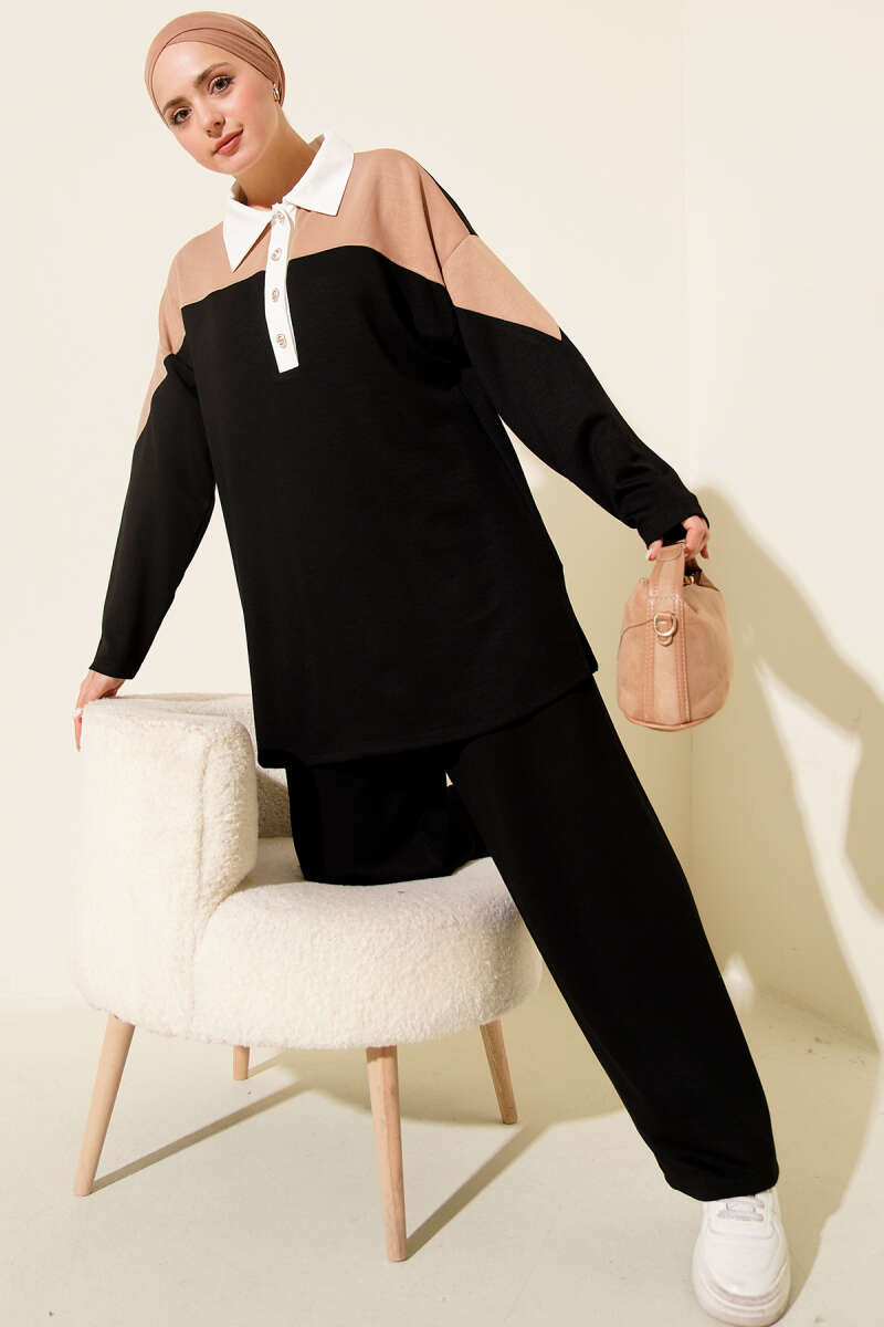 Gömlek Yaka Düğmeli Loyşa İkili Takım Siyah