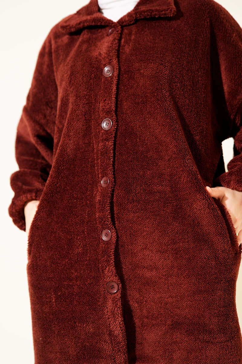 Fermuarlı Kemerli Kahve Tulum