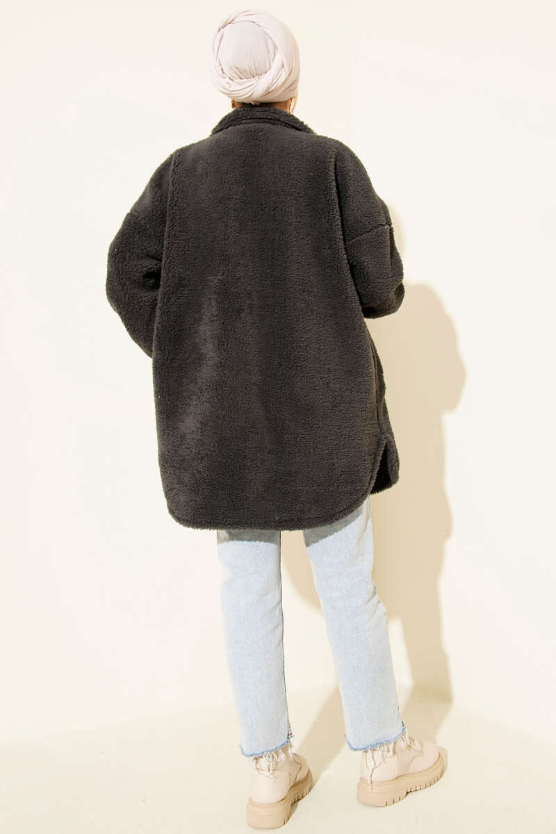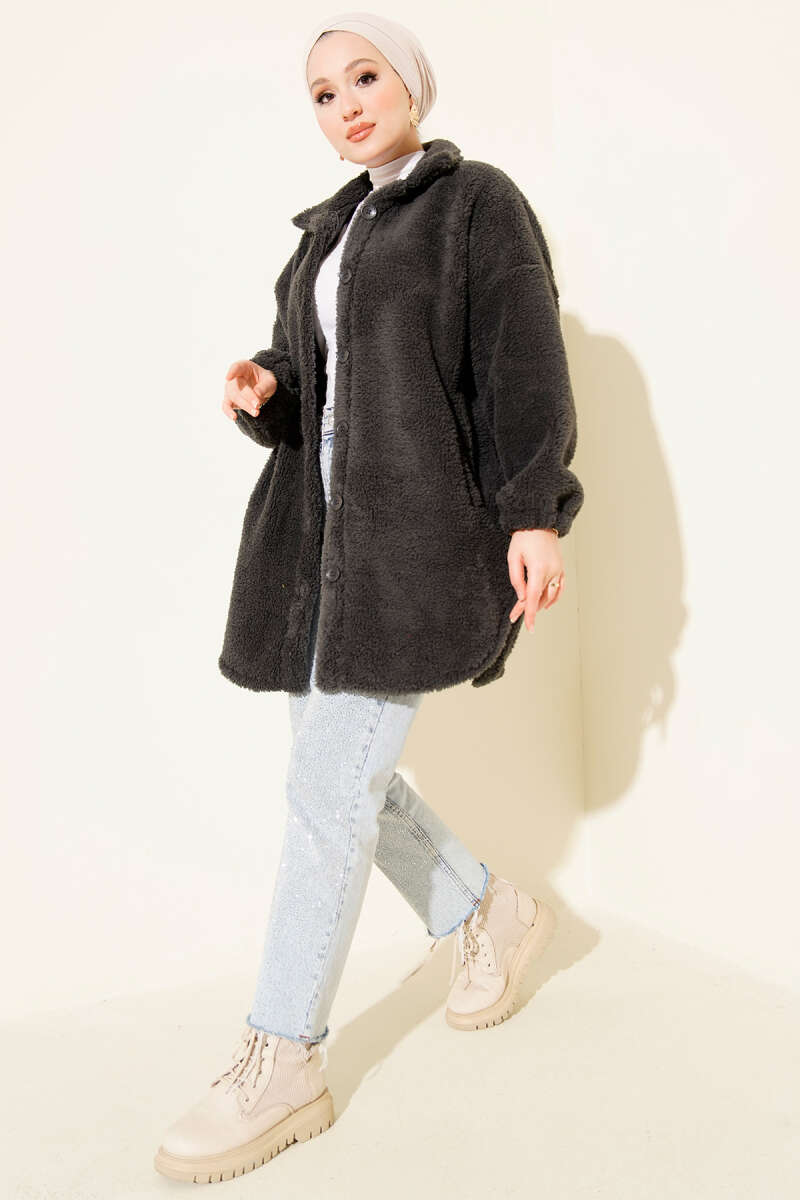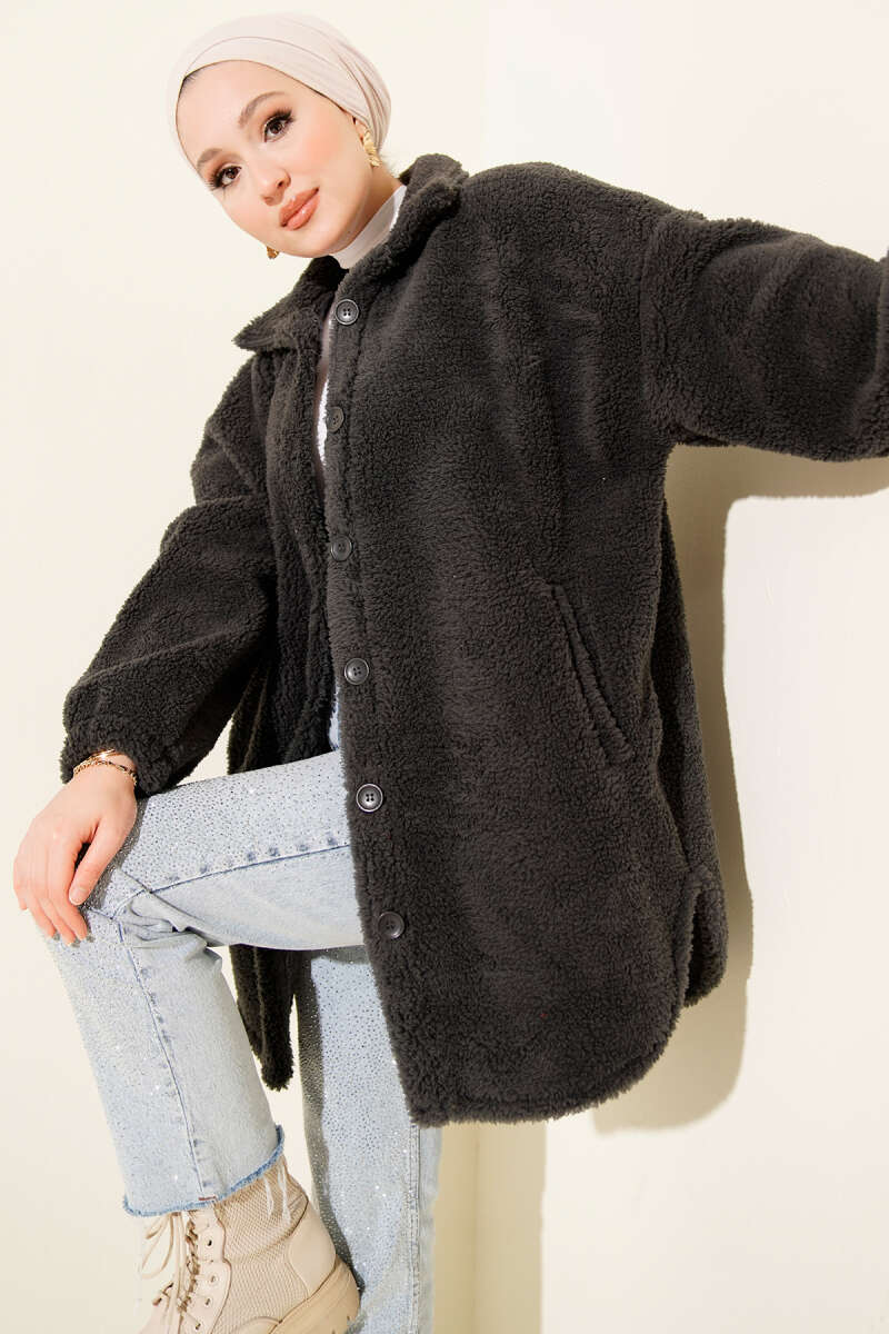 Kol Düğmeli Kaşe Kaban Siyah
