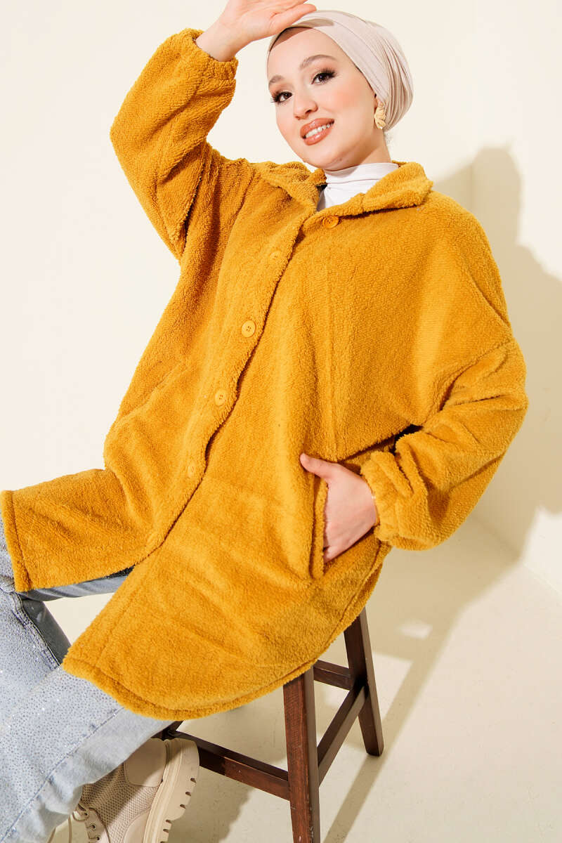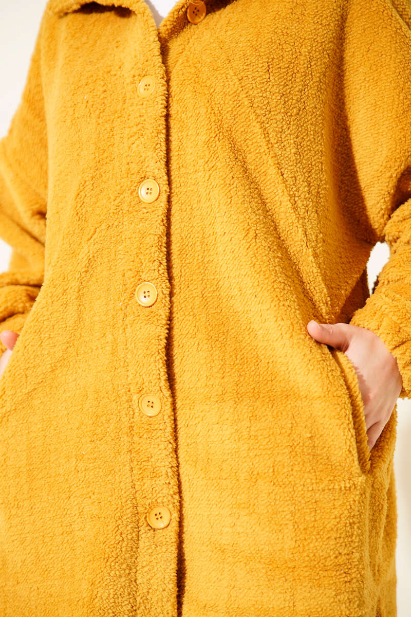 Kol Ribanalı Gold Düğmeli Kaban Kahve