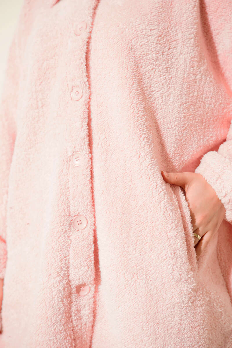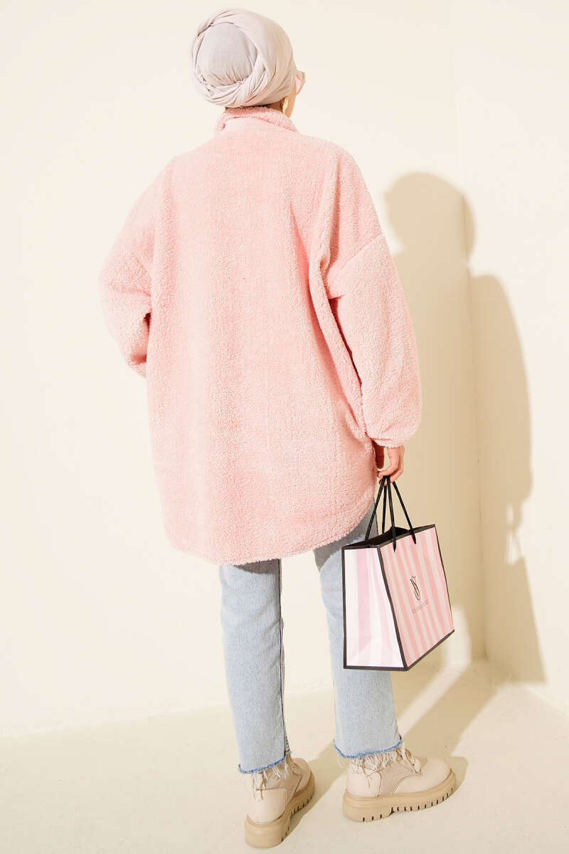 Dik Yaka Taşlı Triko Kazak Pembe