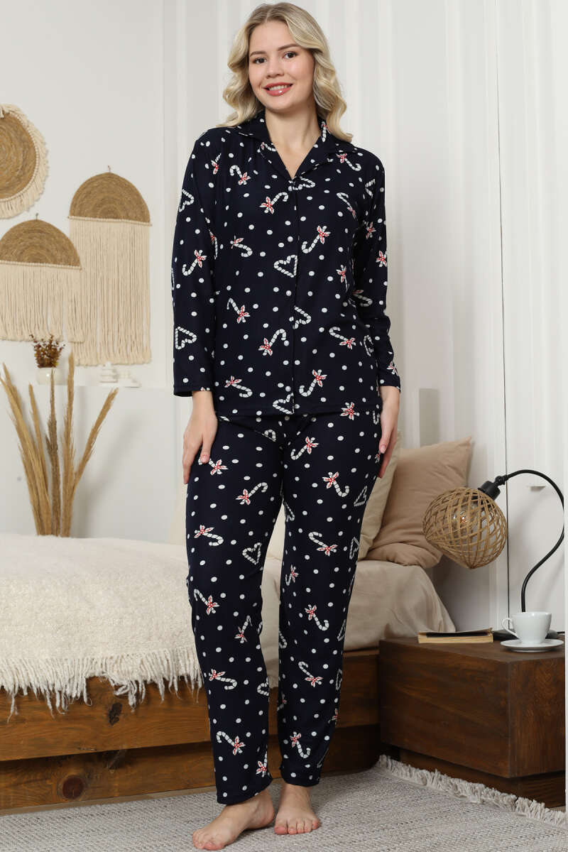 Gömlek Yaka Düğmeli Pijama Takımı Lacivert