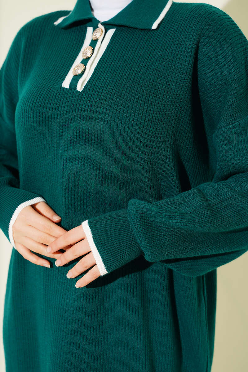 Düğmeli Pelerinli Triko Elbise Takım Yeşil