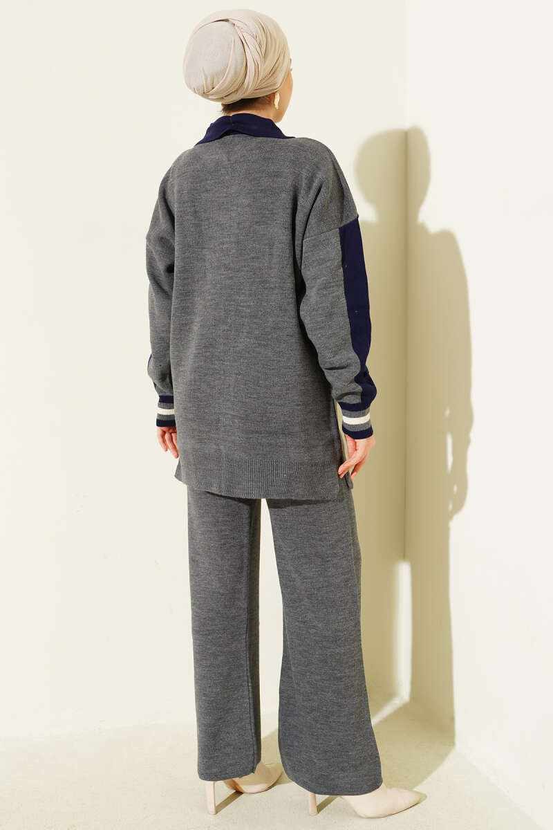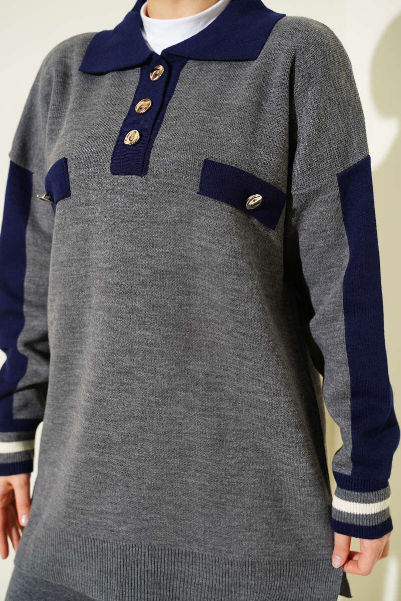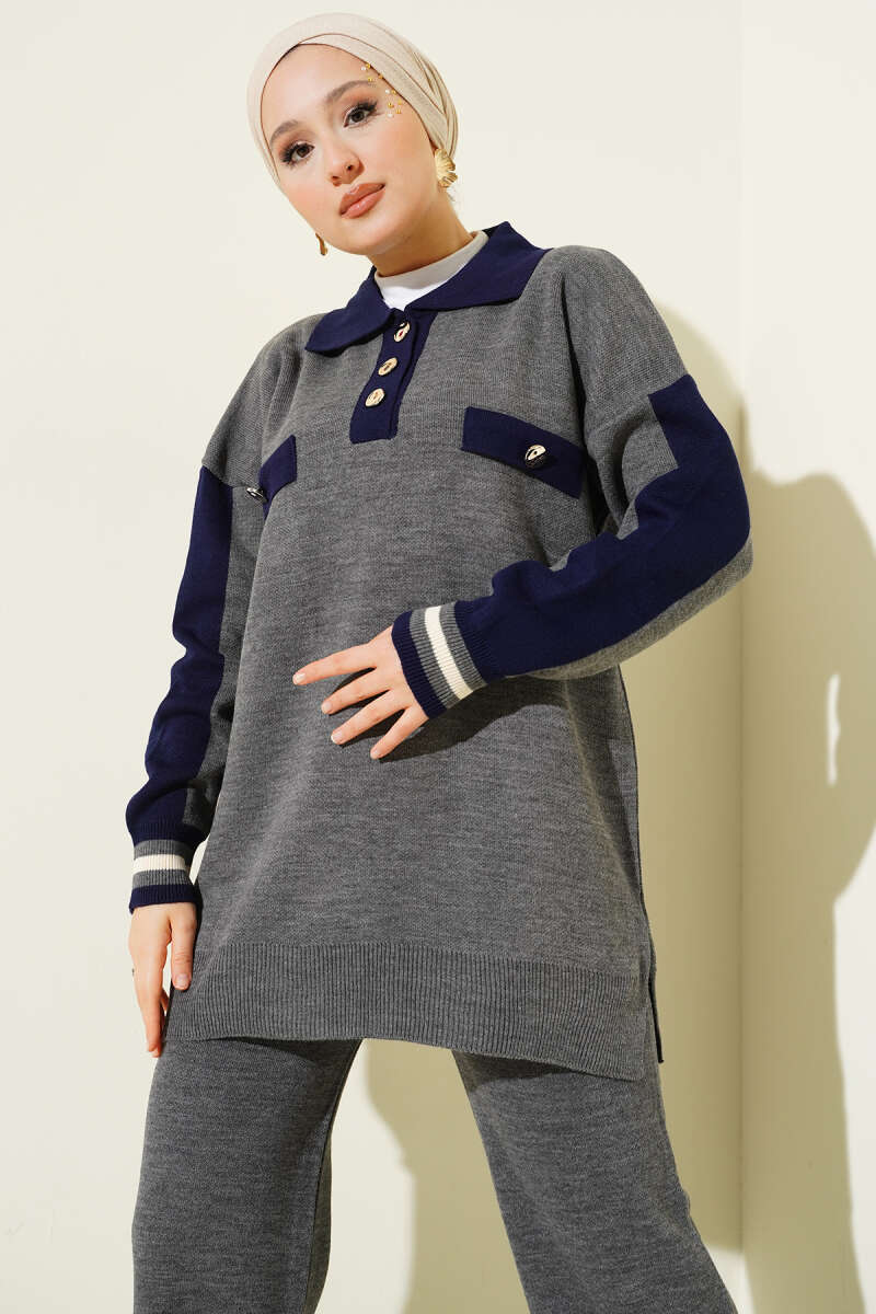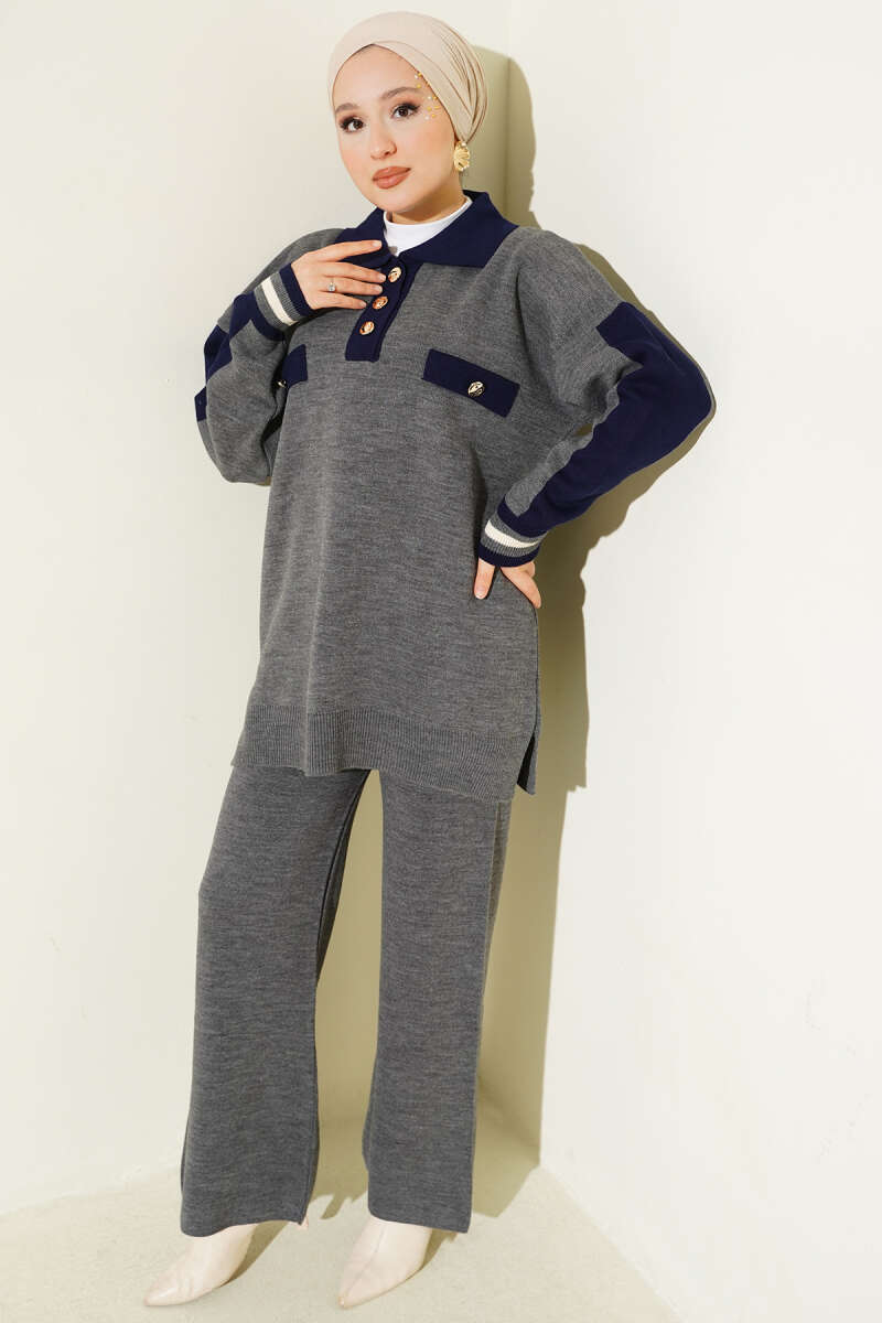 Gömlek Yaka Düğmeli Triko İkili Takım Antrasit