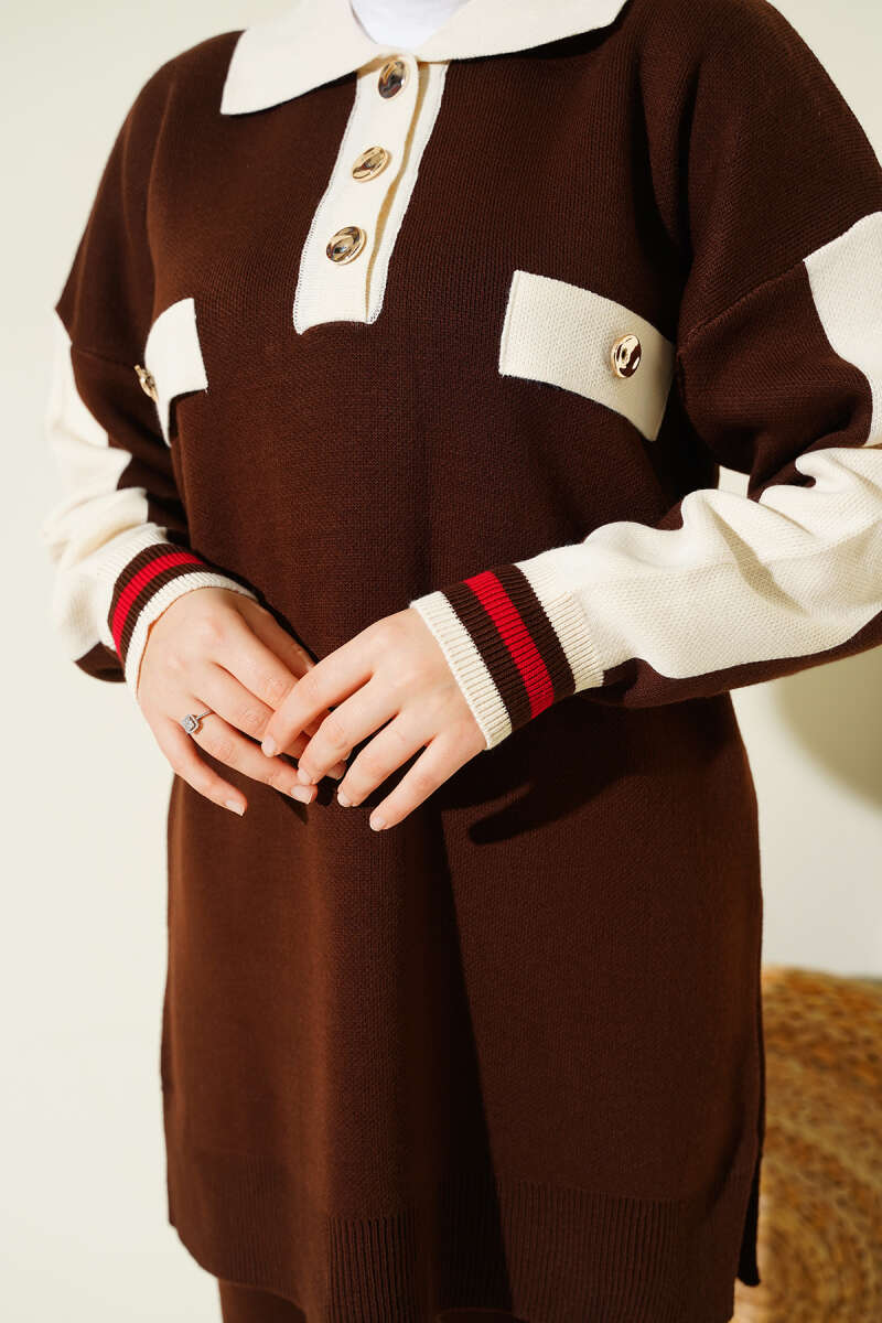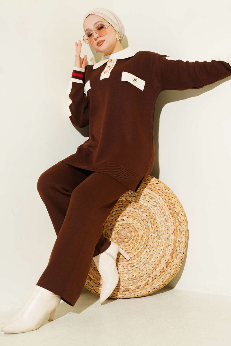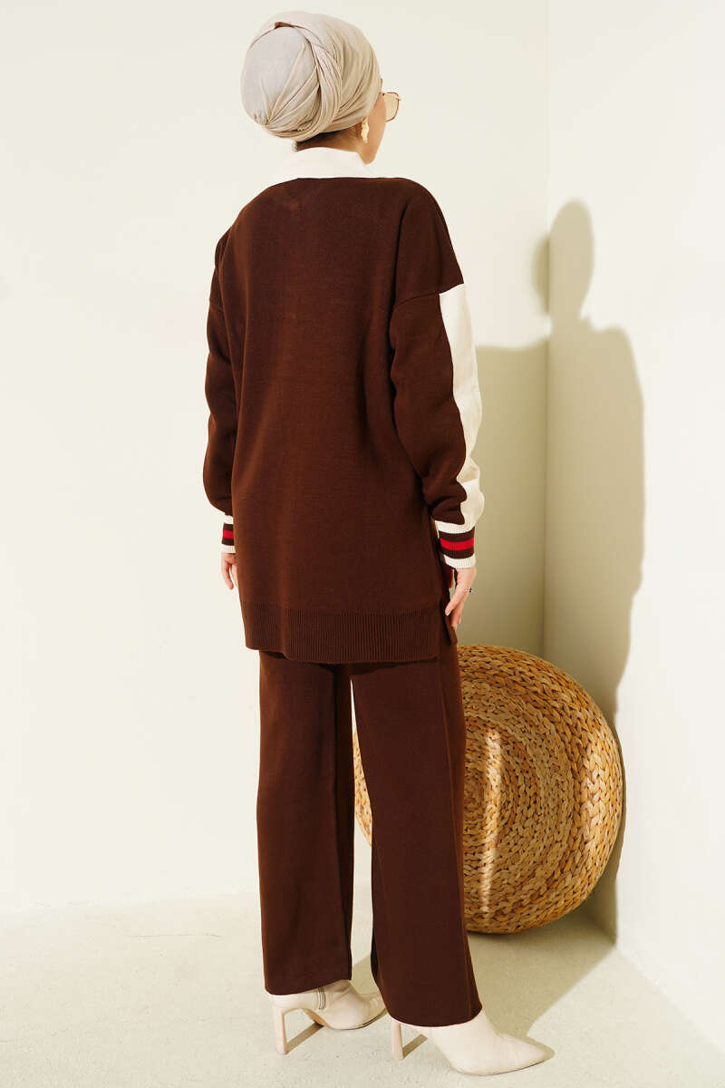 Leopar Garnili Fermuarlı Scuba İkili Takım Siyah Camel