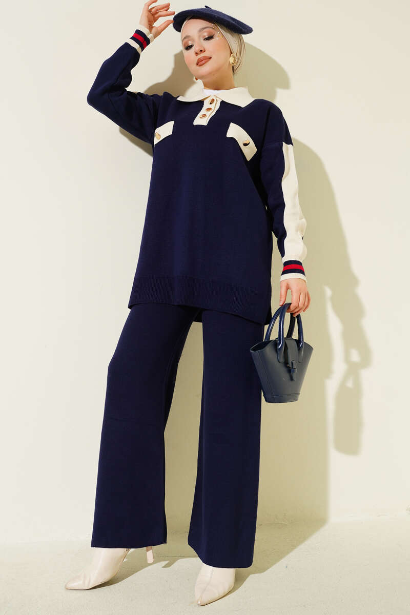 Gömlek Yaka Düğmeli Triko İkili Takım Zümrüt