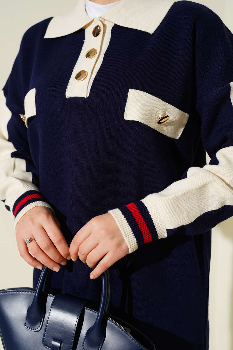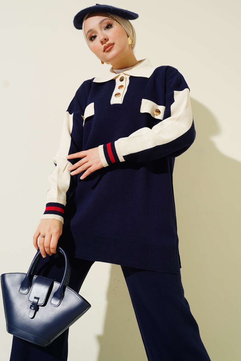 Gömlek Yaka Düğmeli Triko İkili Takım Bej
