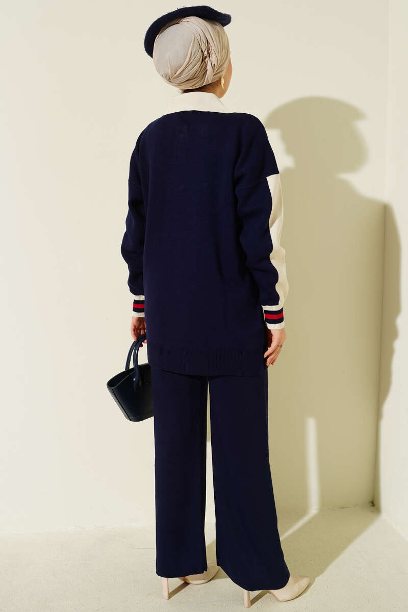 Zımbalı Ceketli Tencel İkili Takım Lacivert