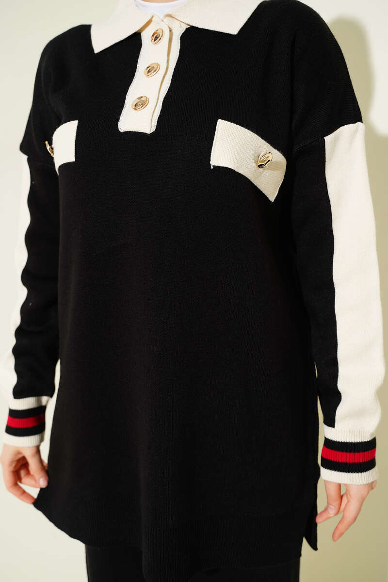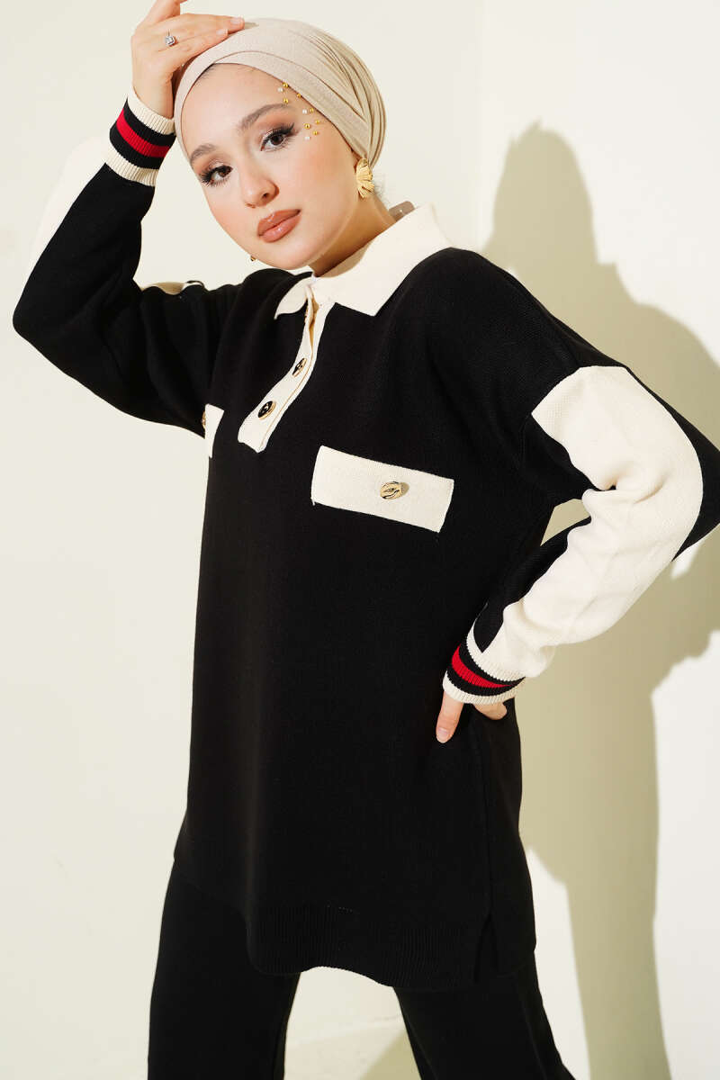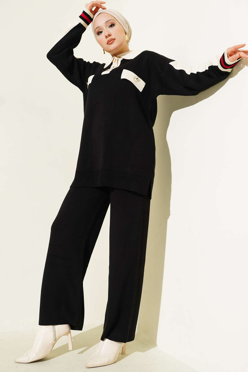 Gömlek Yaka Düğmeli Triko İkili Takım Lacivert
