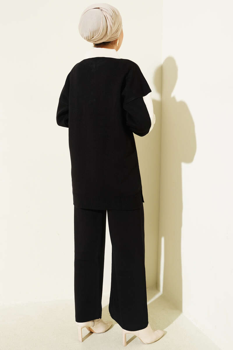 Gömlek Yaka Düğmeli Triko İkili Takım Füme