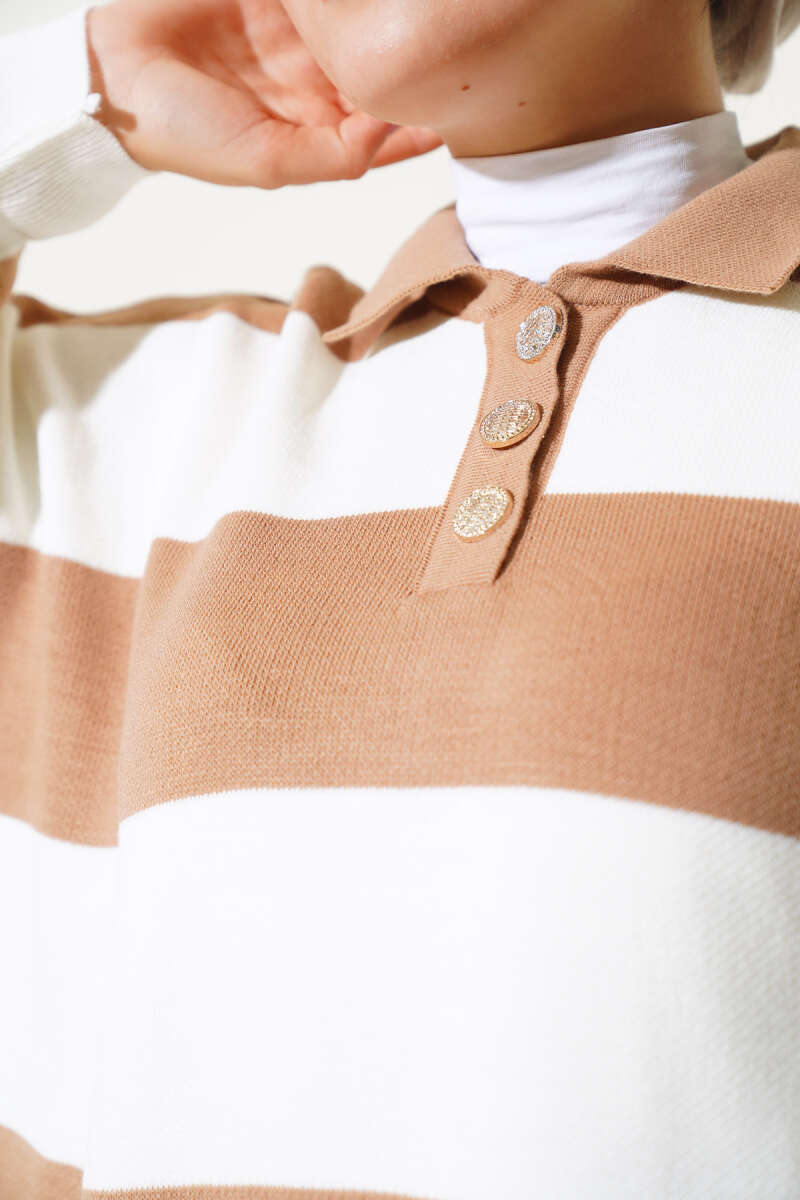 Yatay Çizgi Detaylı Basic Triko Tunik Ekru