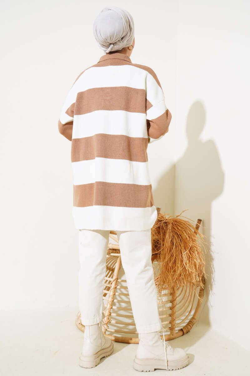 Yatay Çizgi Detaylı Basic Triko Tunik Kahve