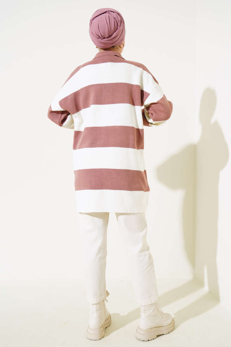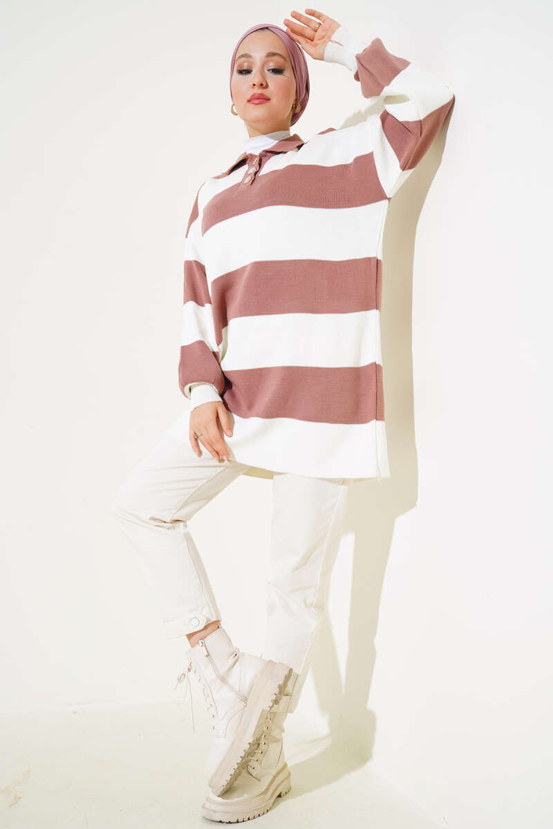 Yatay Çizgi Detaylı Basic Triko Tunik Vizon