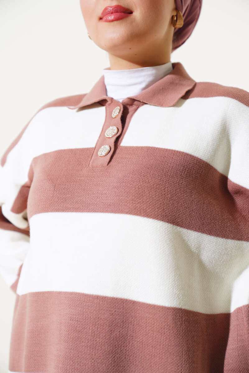 Yatay Çizgi Detaylı Basic Triko Tunik Kahve