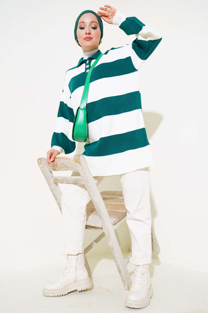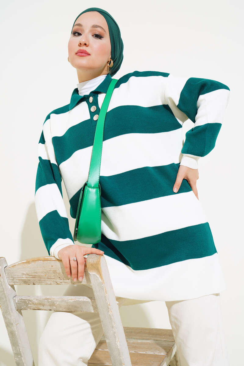 Gömlek Yaka Düğmeli Triko Tunik Nefti