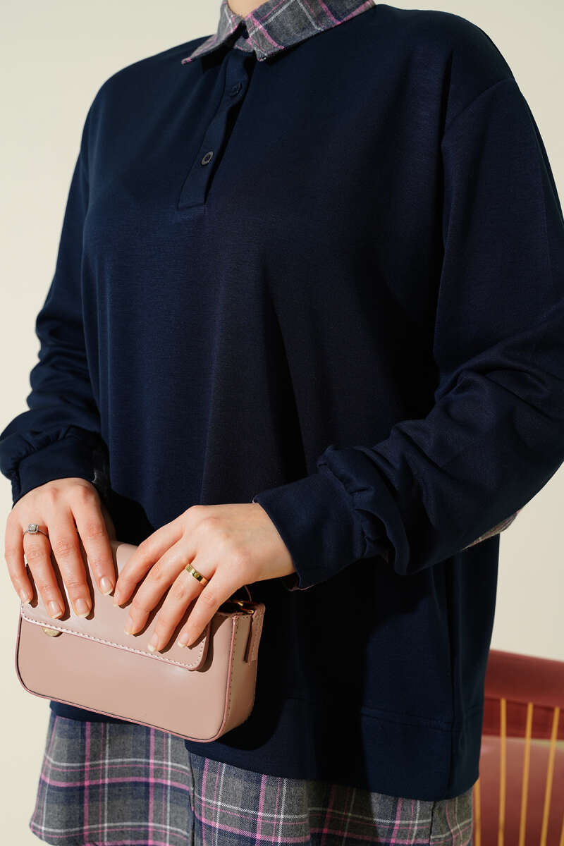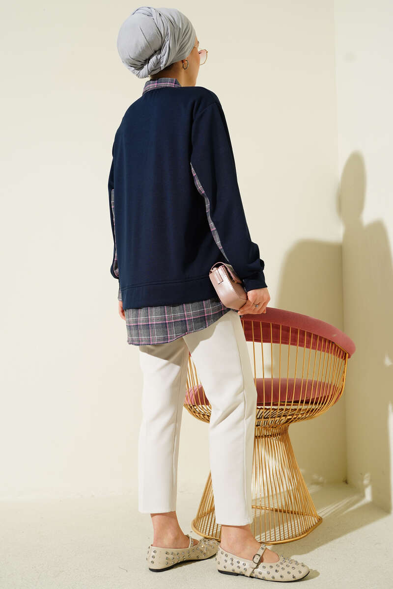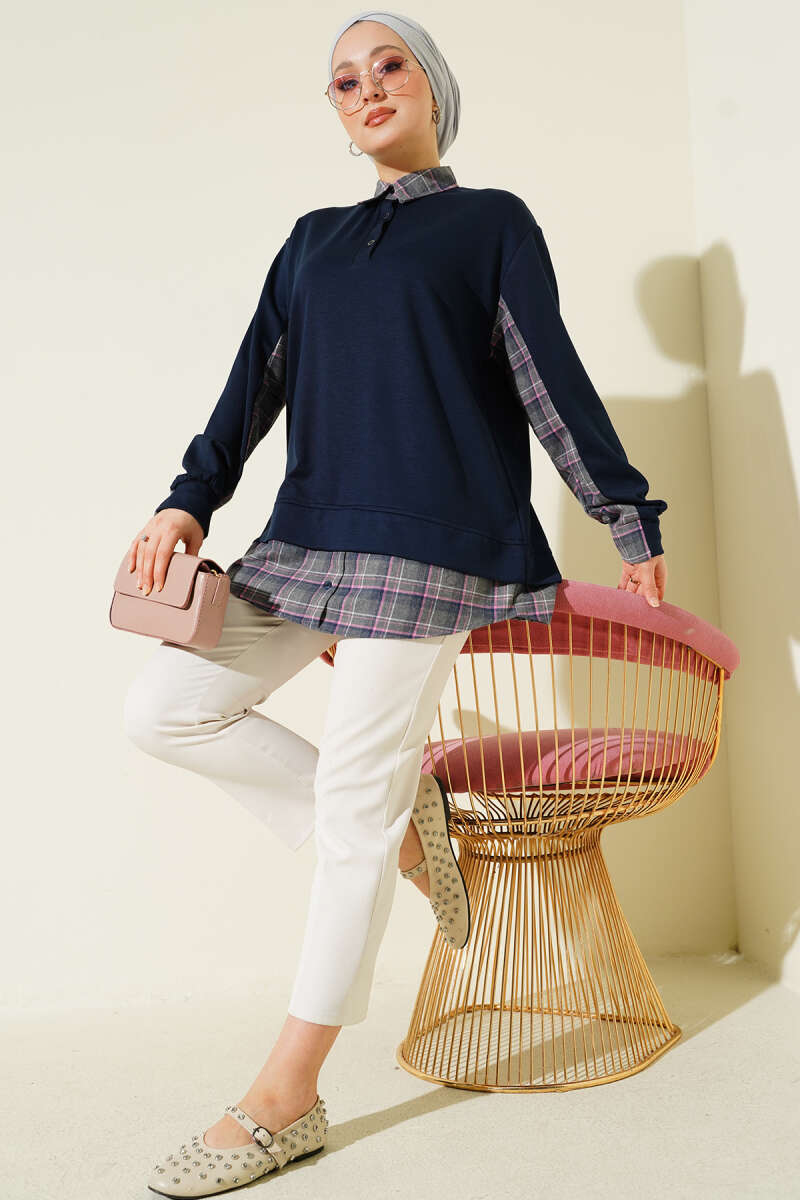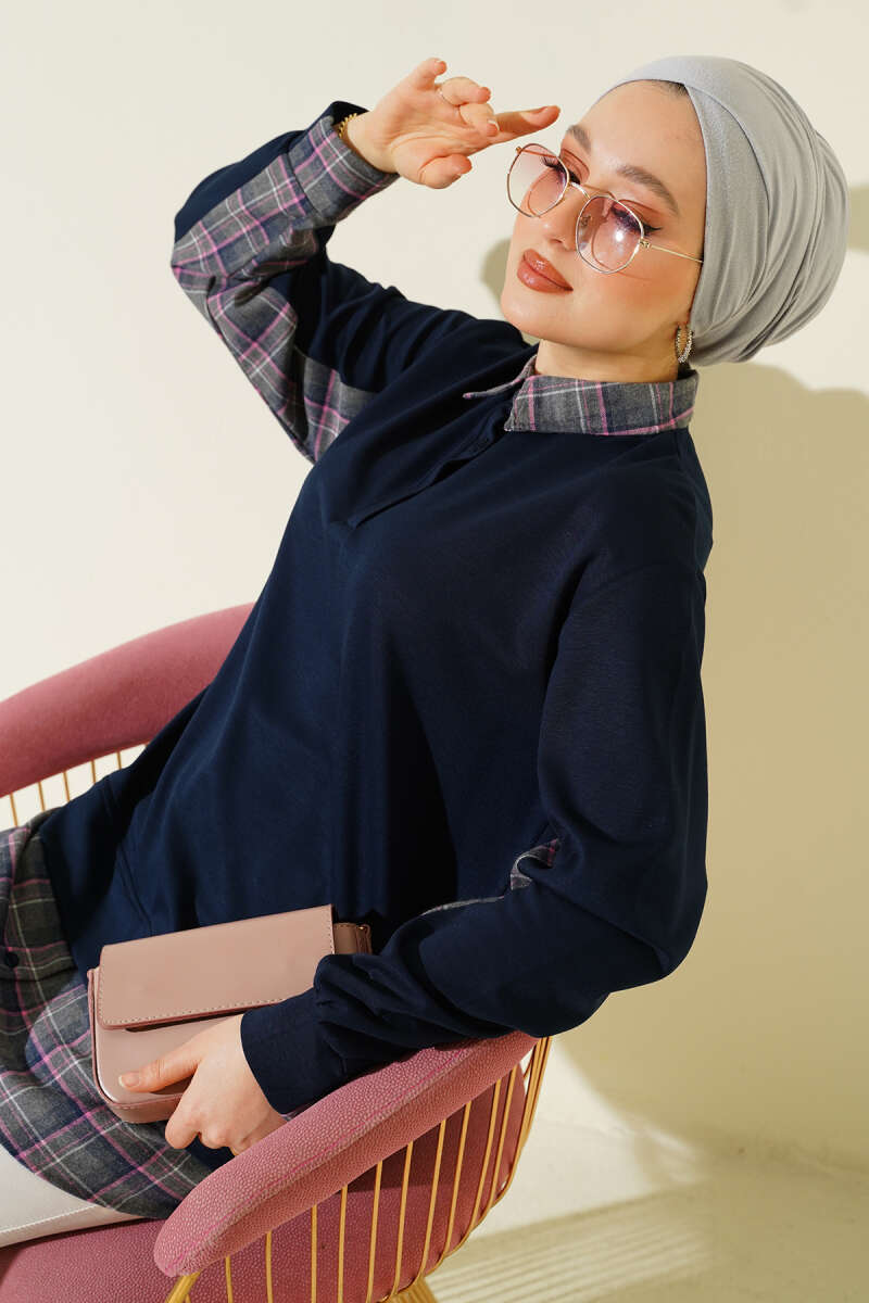 Gömlek Yaka Ekose Garnili Tunik Lacivert