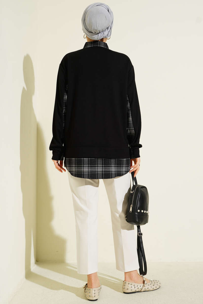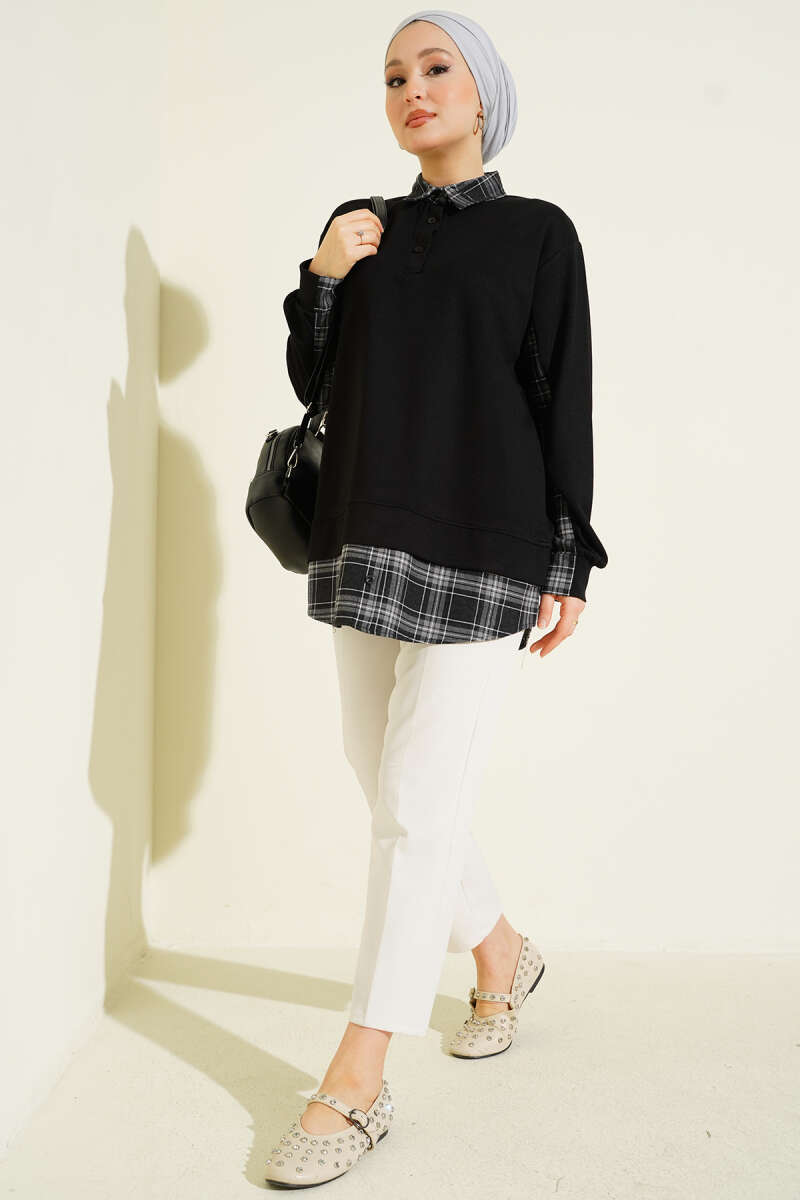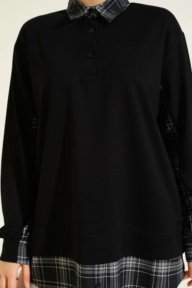 Gömlek Yaka Ekose Garnili Tunik Siyah