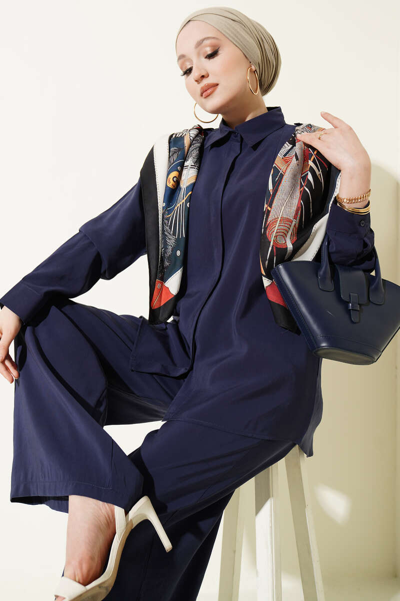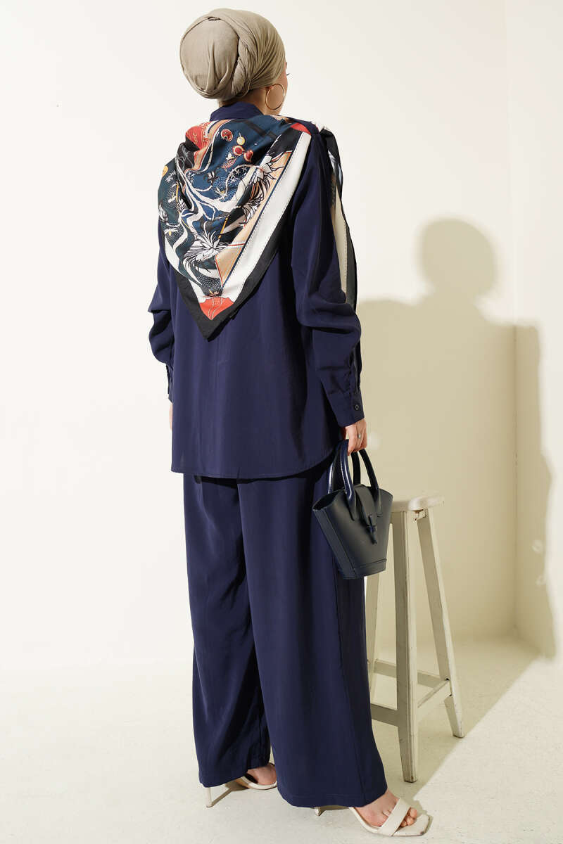 Gömlek Yaka Eşarp Detaylı İkili Takım Lacivert