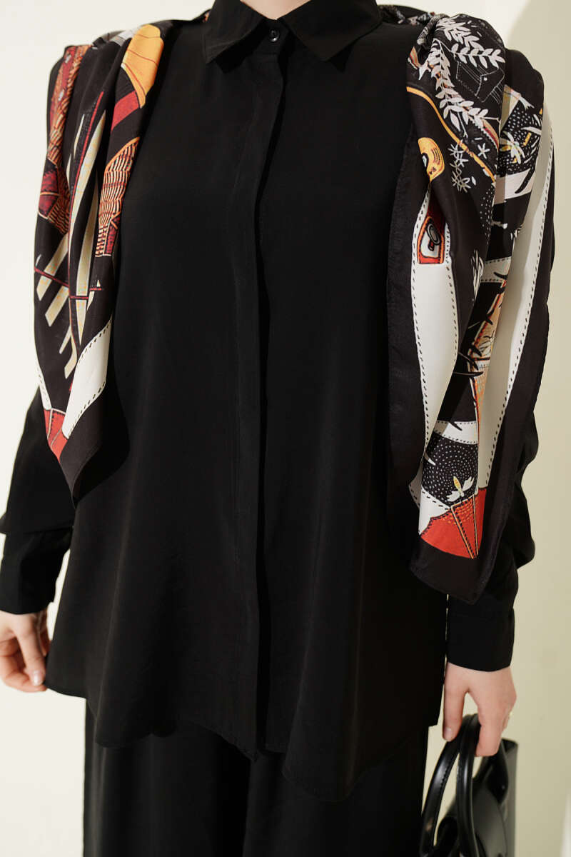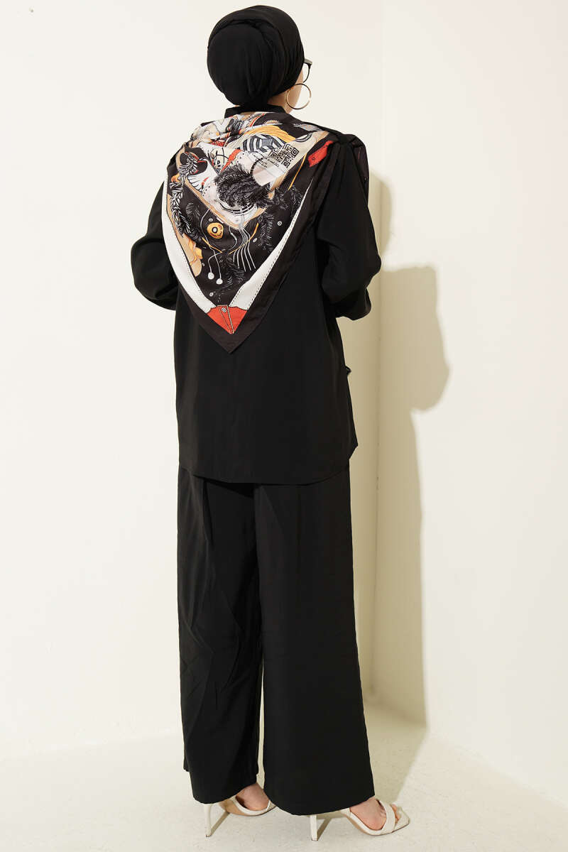 Gömlek Yaka Eşarp Detaylı İkili Takım Siyah