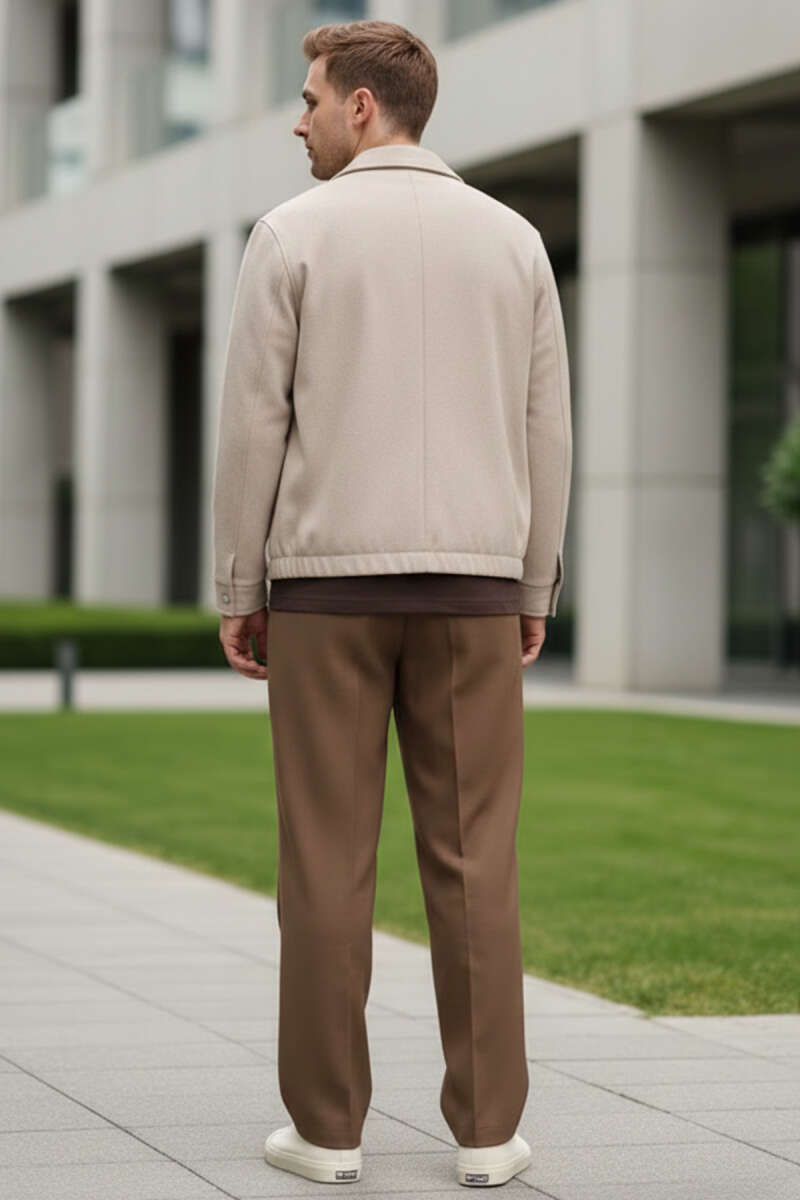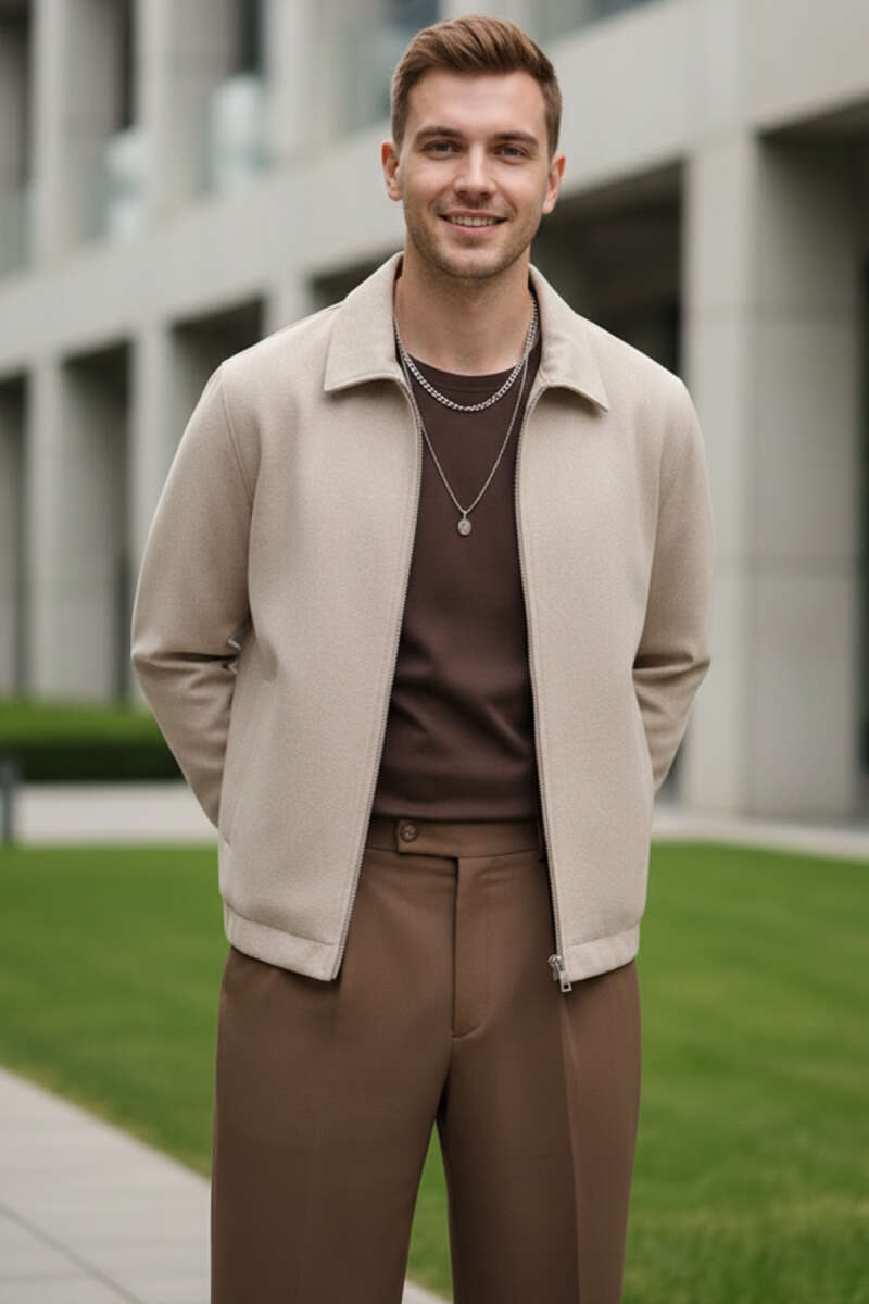 Gömlek Yaka Fermuarlı Erkek Bomber Ceket Bej