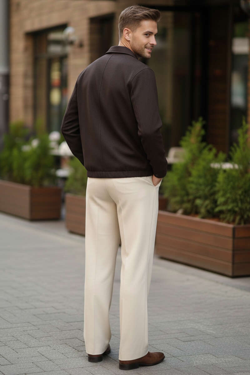 Gömlek Yaka Fermuarlı Erkek Bomber Ceket Bej