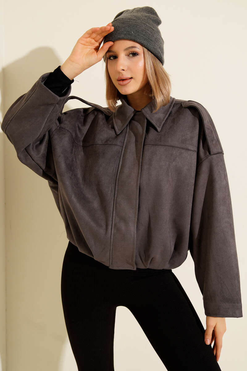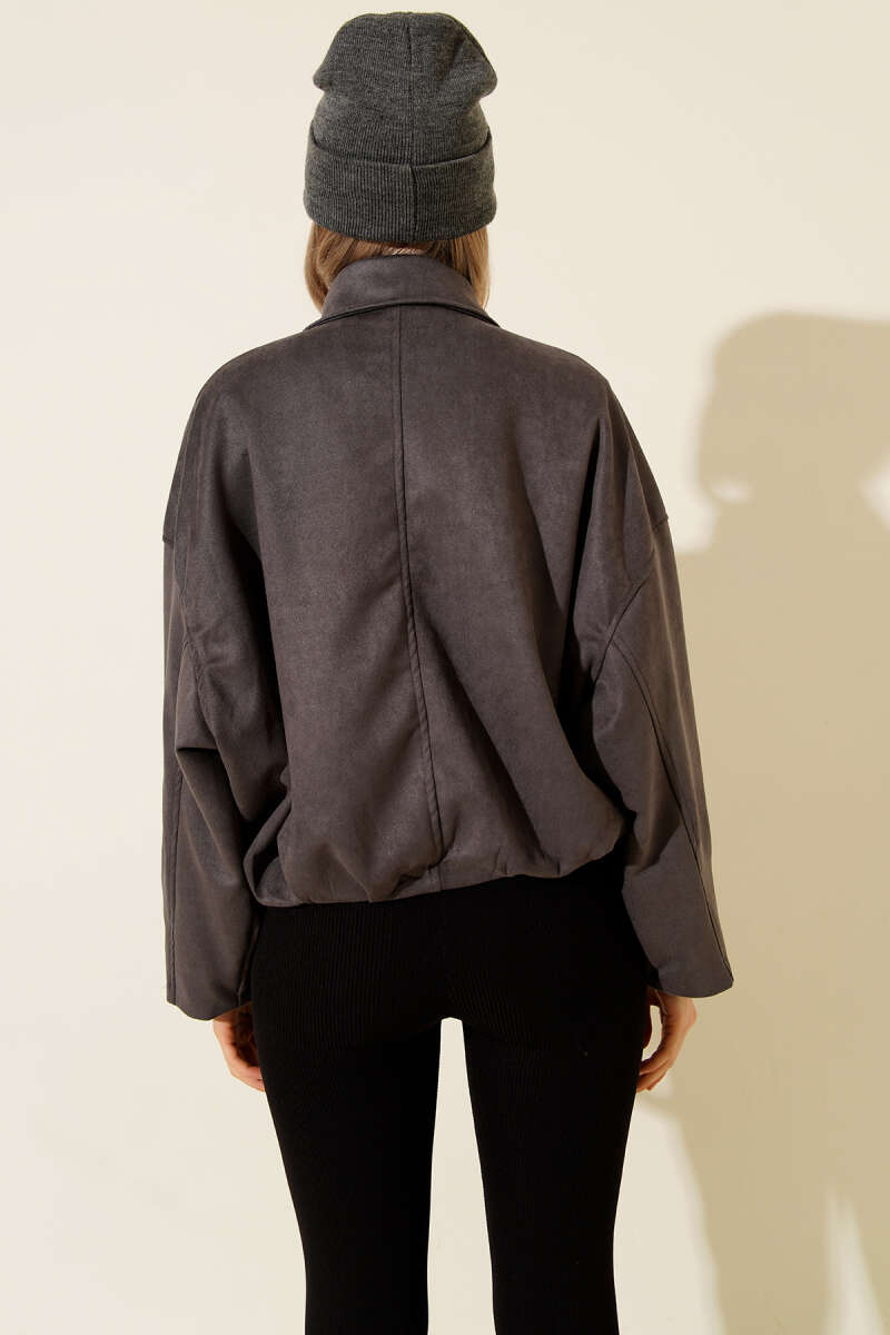 Gömlek Yaka Fermuarlı Süet Ceket Antrasit