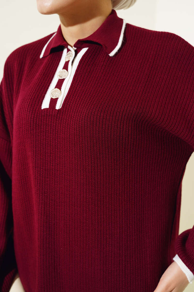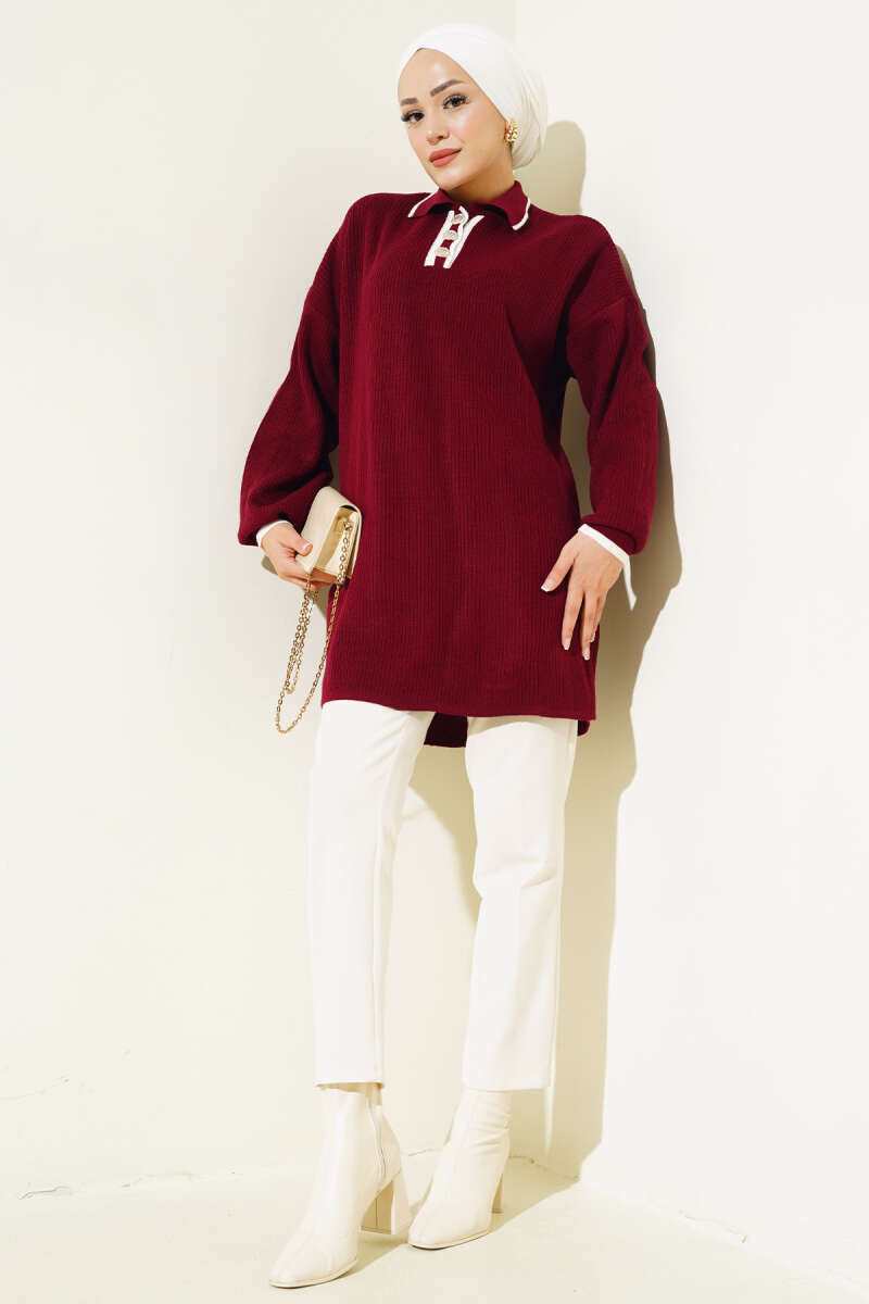 Salaş Bisiklet Yaka Simli Triko Tunik Kırmızı