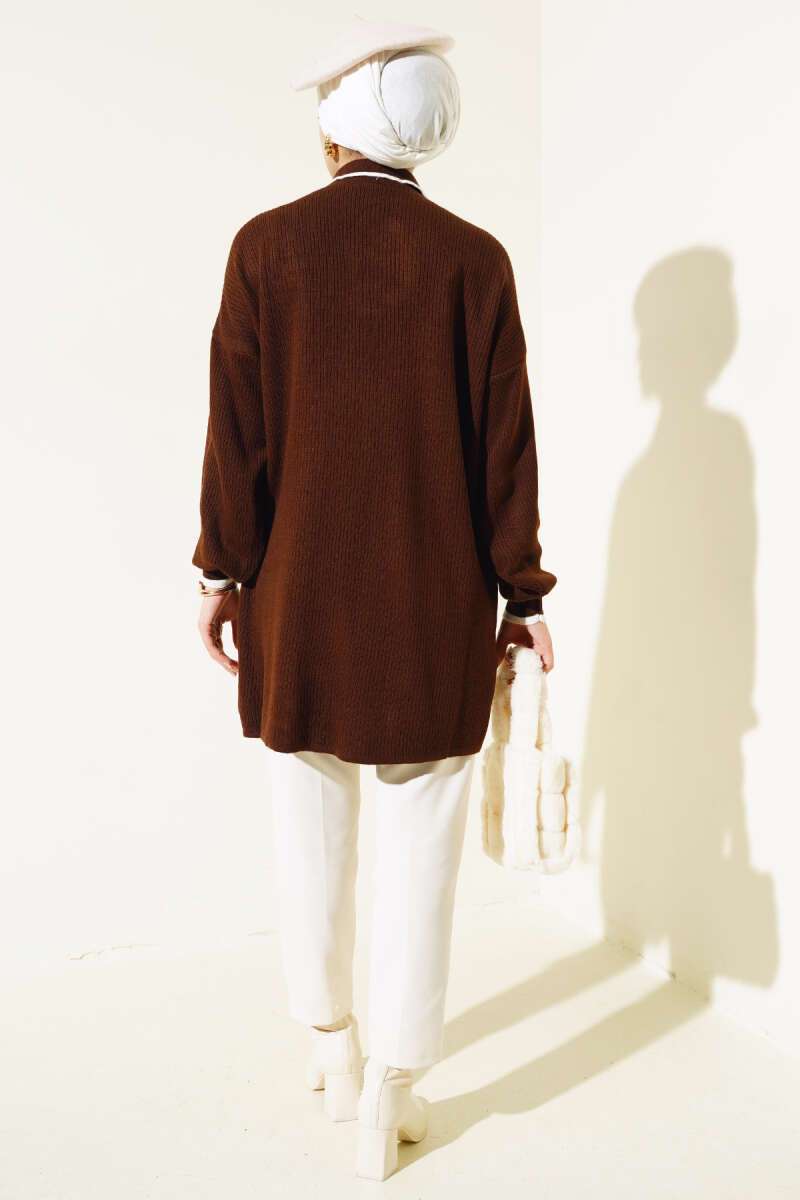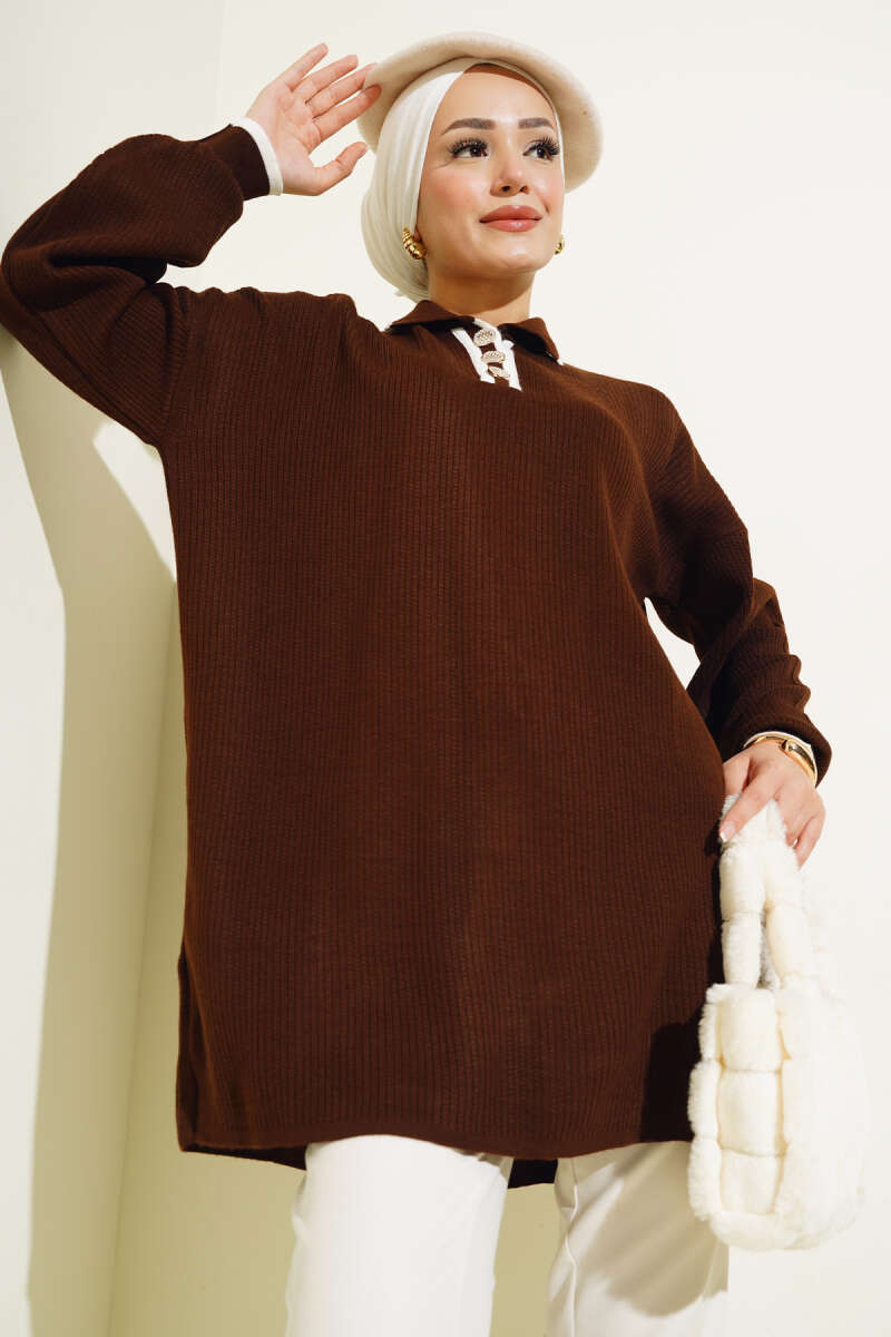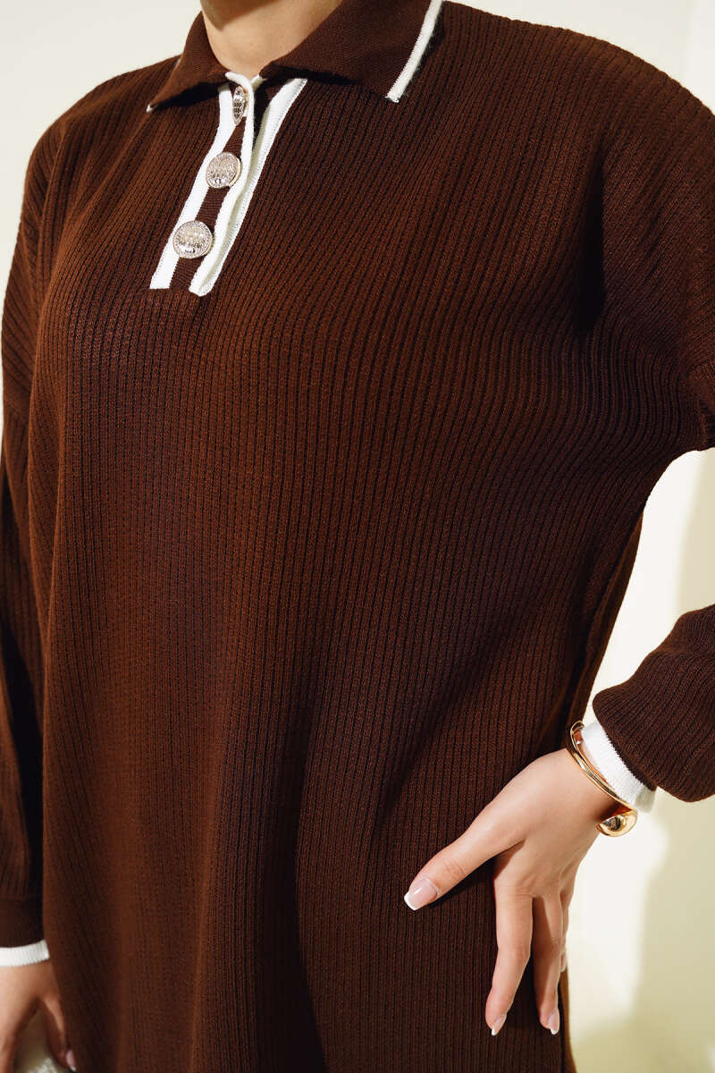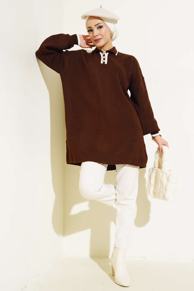 Loyşa Çıtçıtlı Kanguru Cepli Tunik Kahve