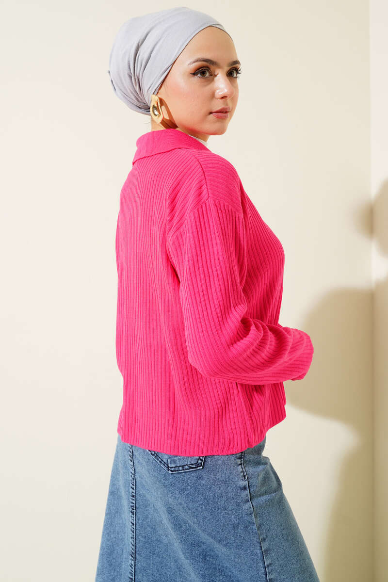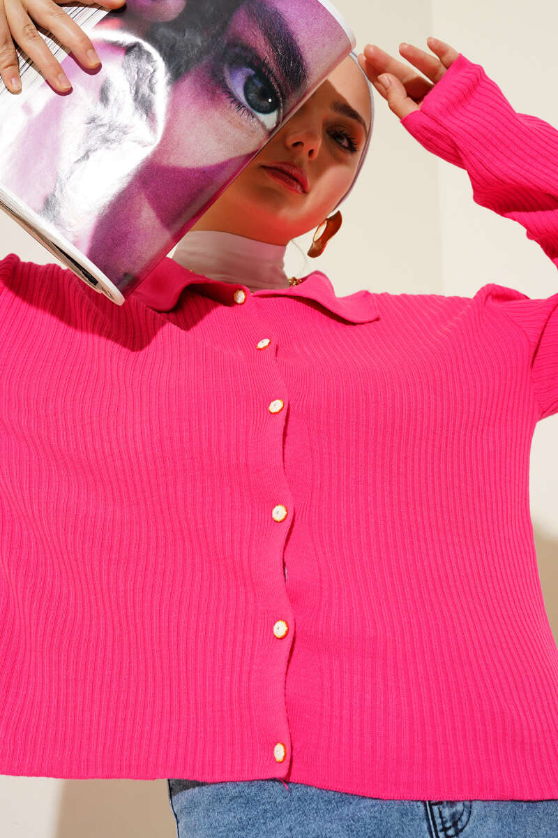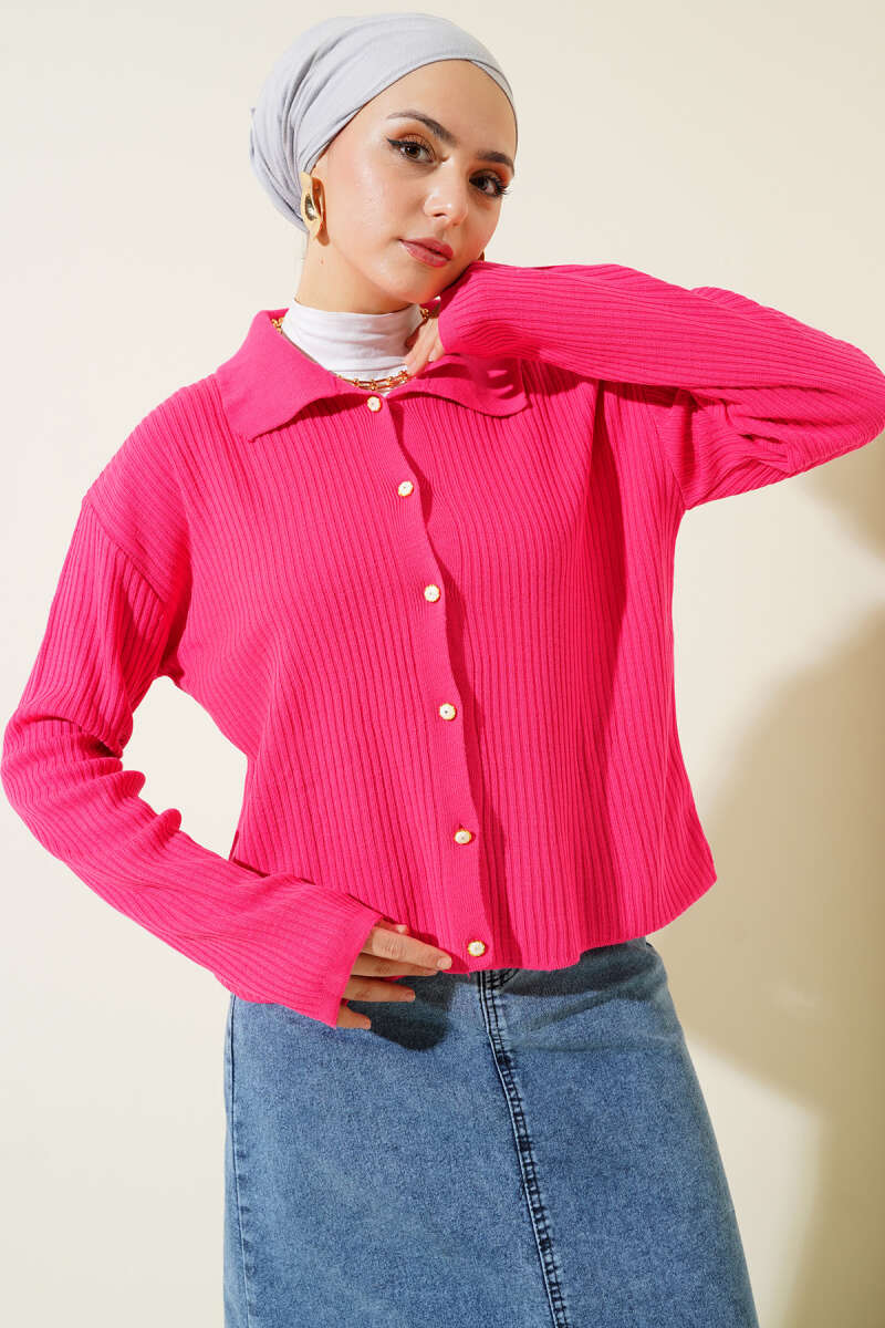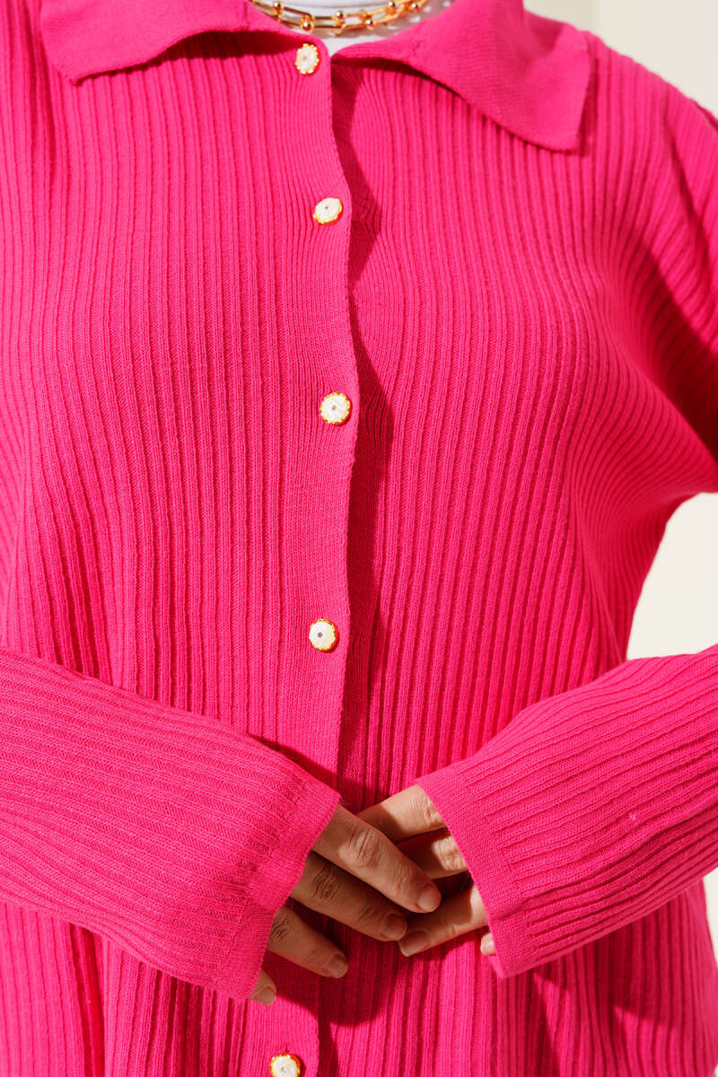 Düğmeli Uzun Merserize Hırka Mürdüm