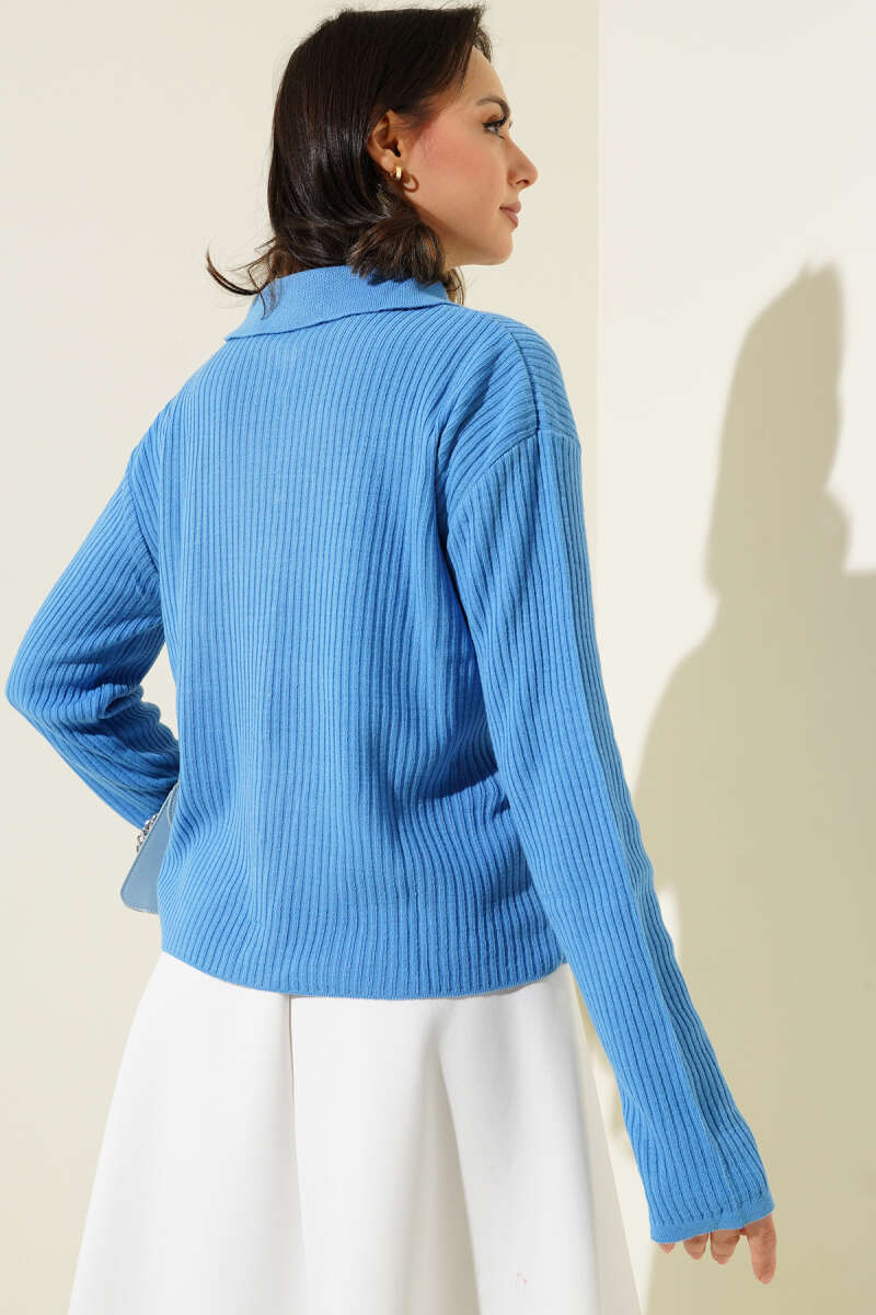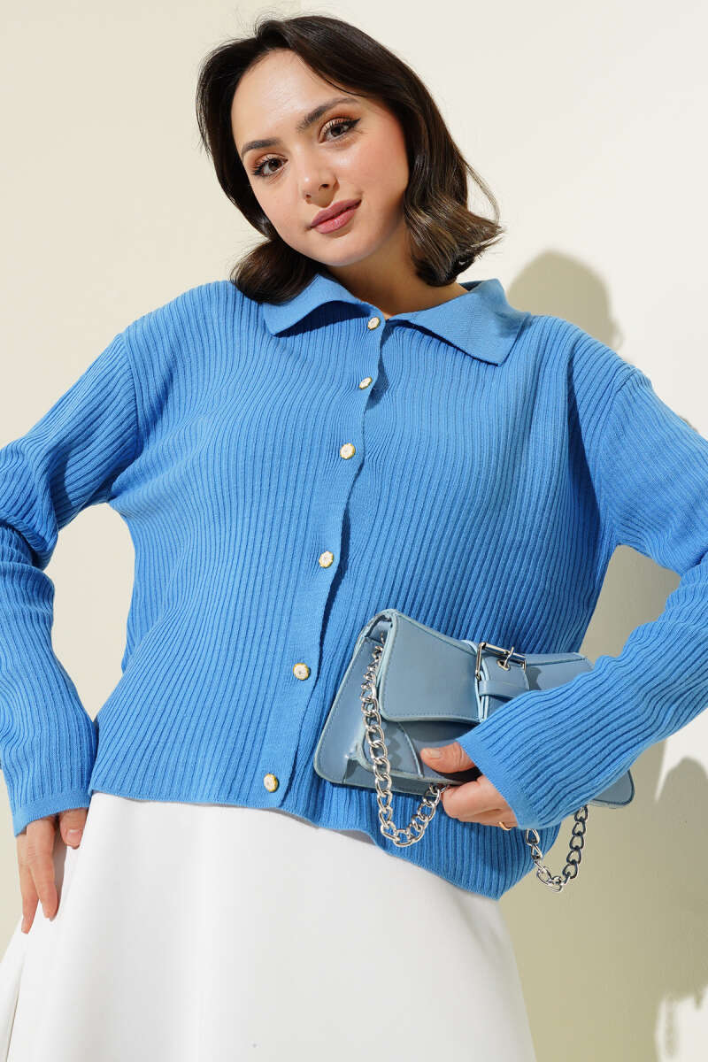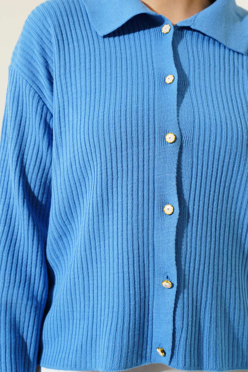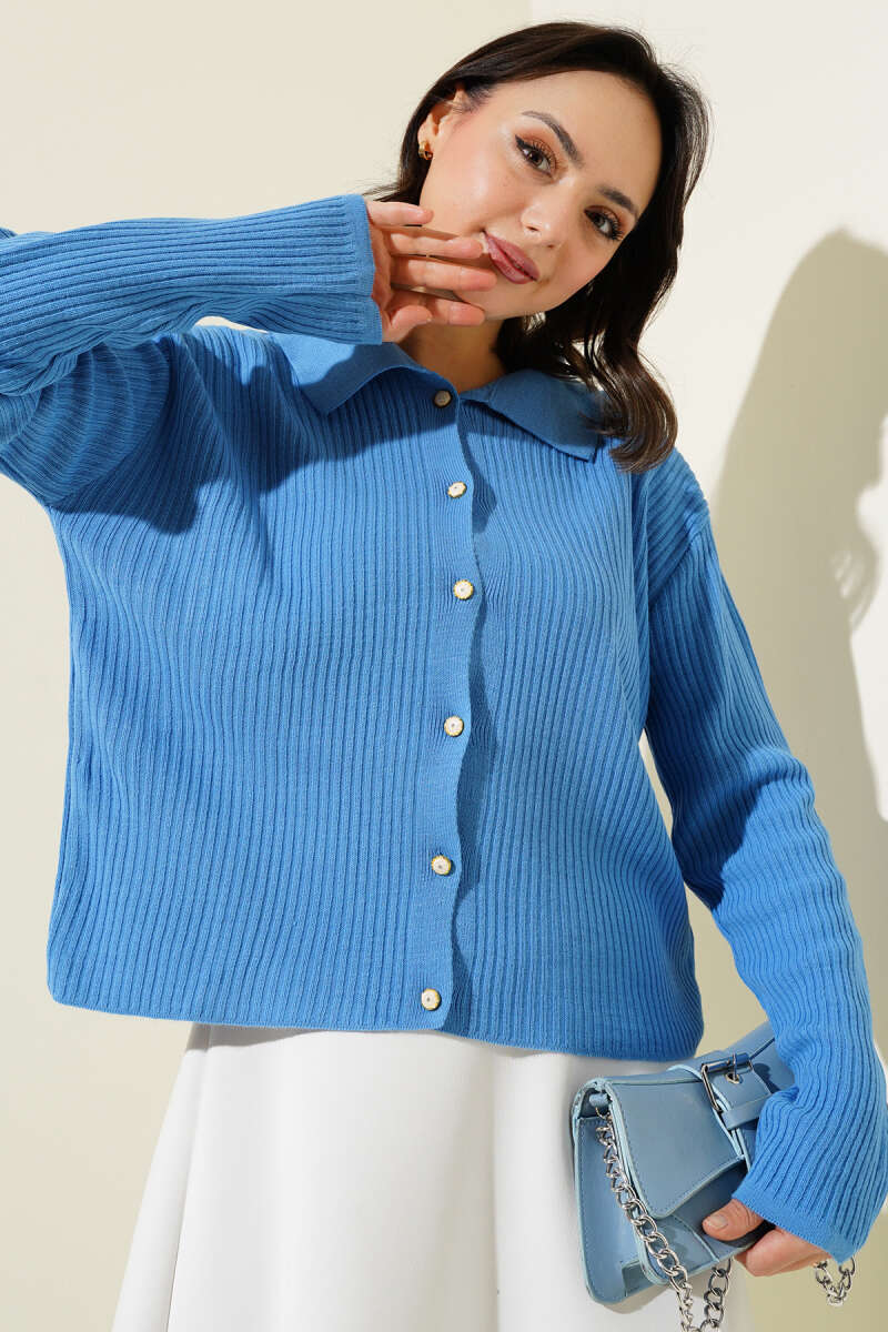 Düğmeli Uzun Merserize Hırka Lacivert