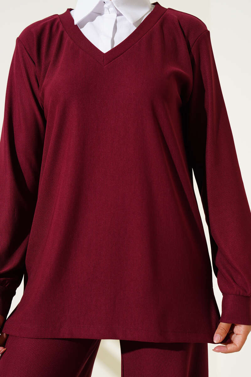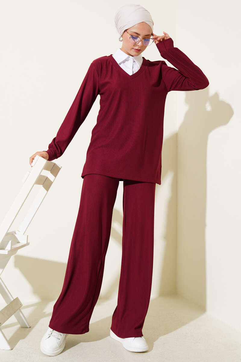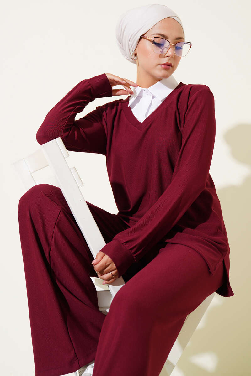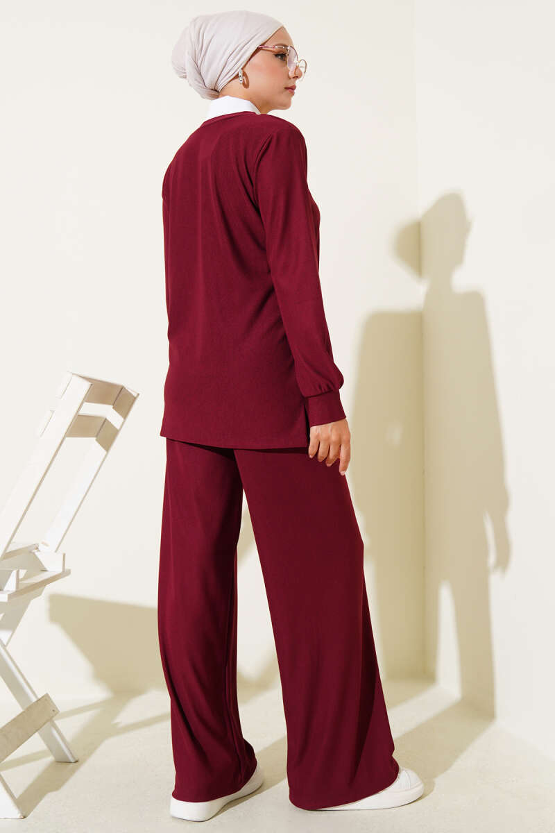 Çapraz Taş Süslemeli İkili Takım Mürdüm