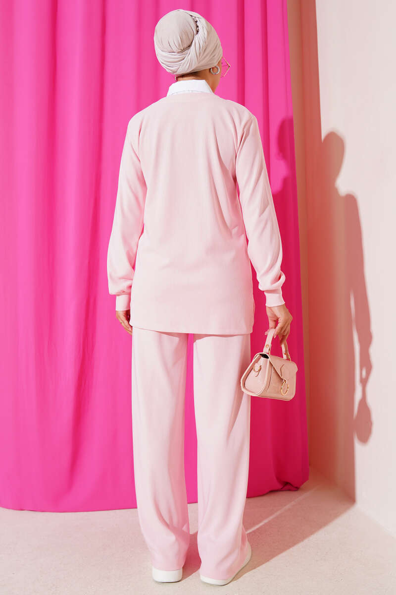 Gömlek Yaka Fitilli Salaş İkili Takım Beyaz