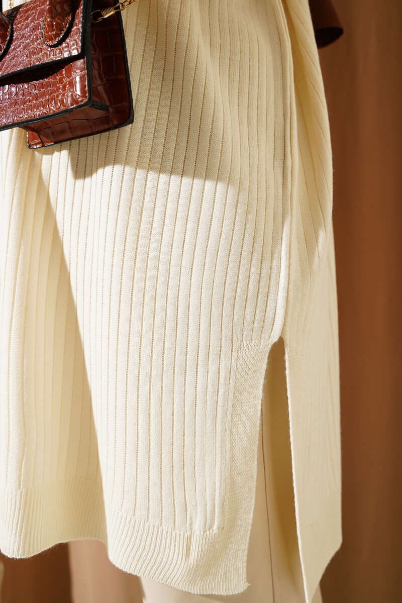 Basic Oversize Triko Tunik Ekru