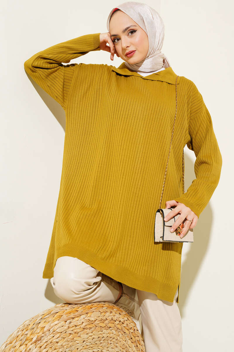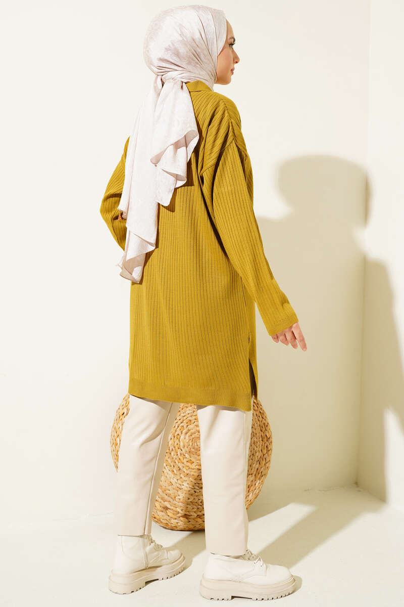 Sarmal Desen Detaylı Triko Hırka Yağ Yeşili