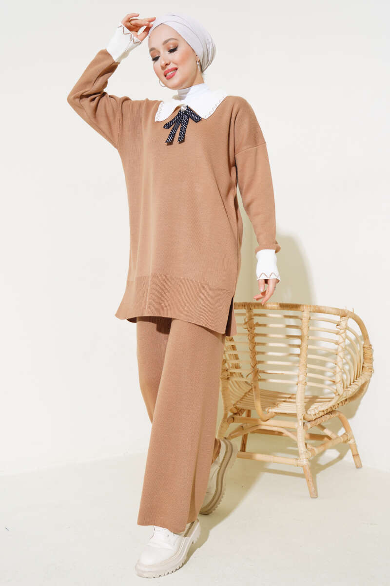 Çoban Dikişli Triko Tunik İkili Takım Nefti