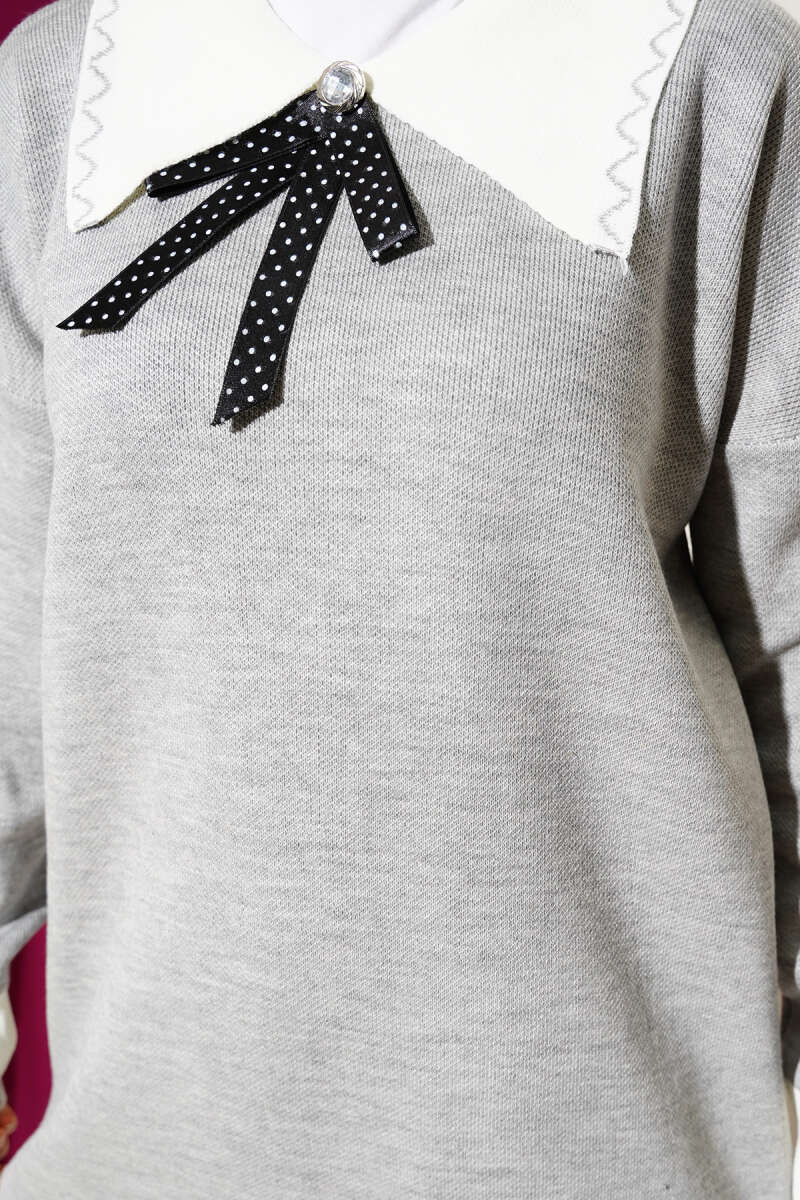 Düz Yumoş Triko Kazak Gri
