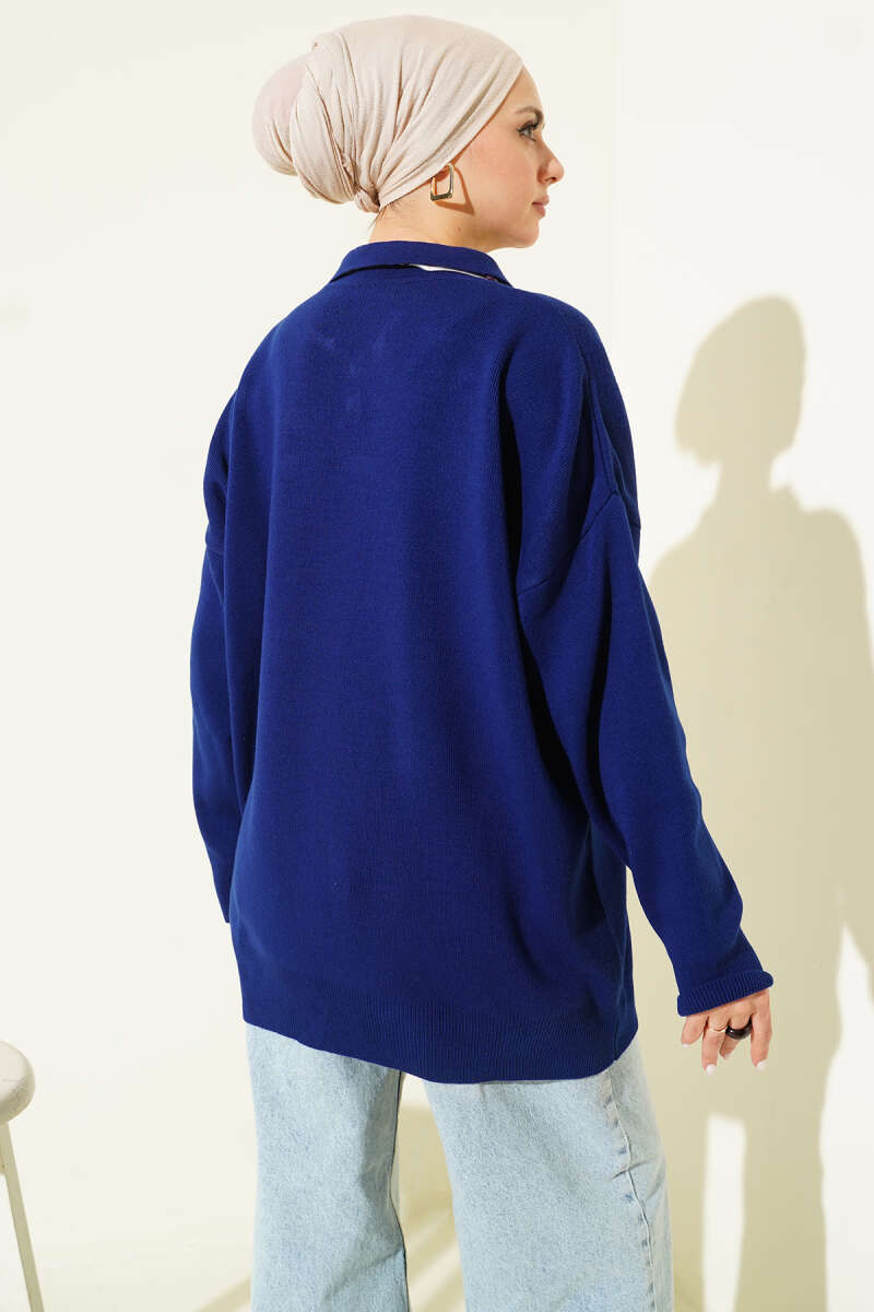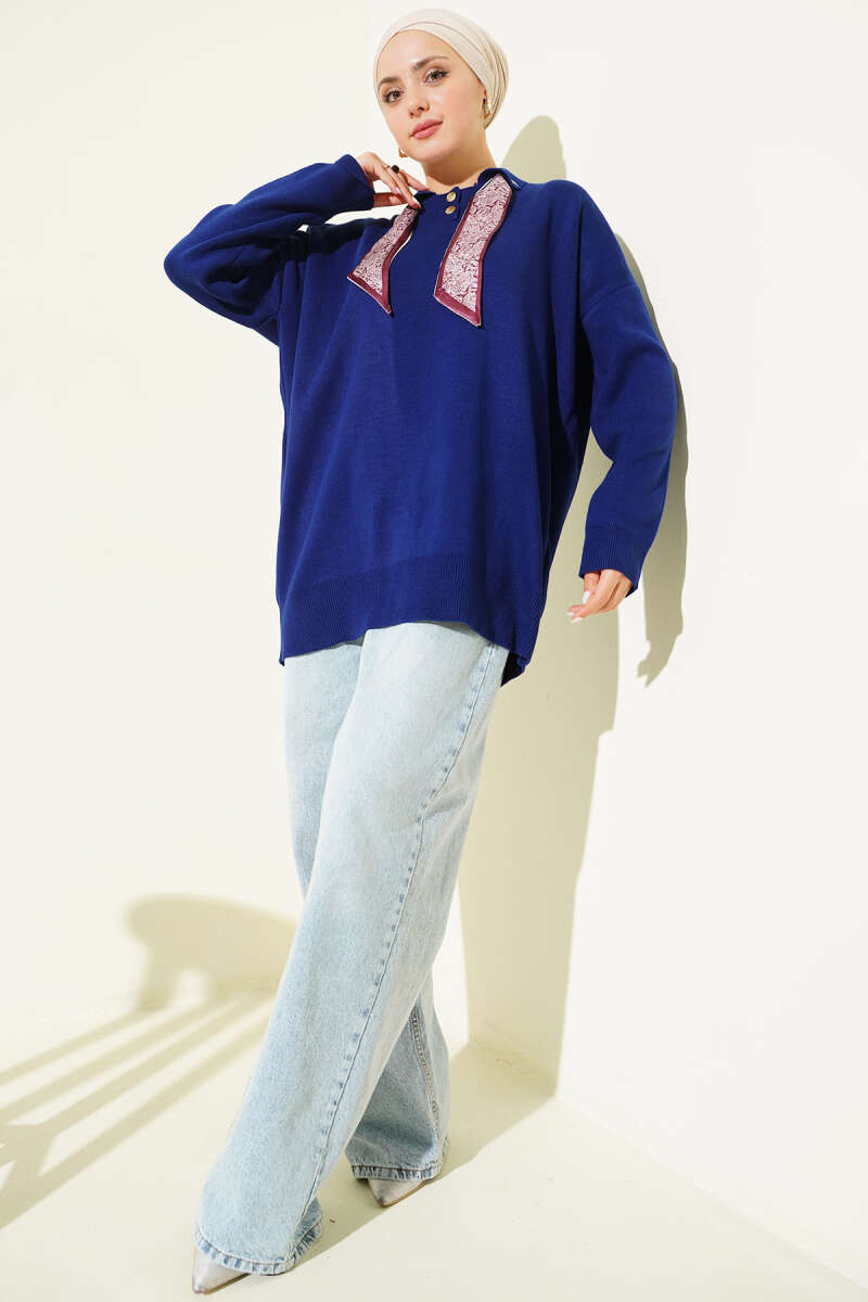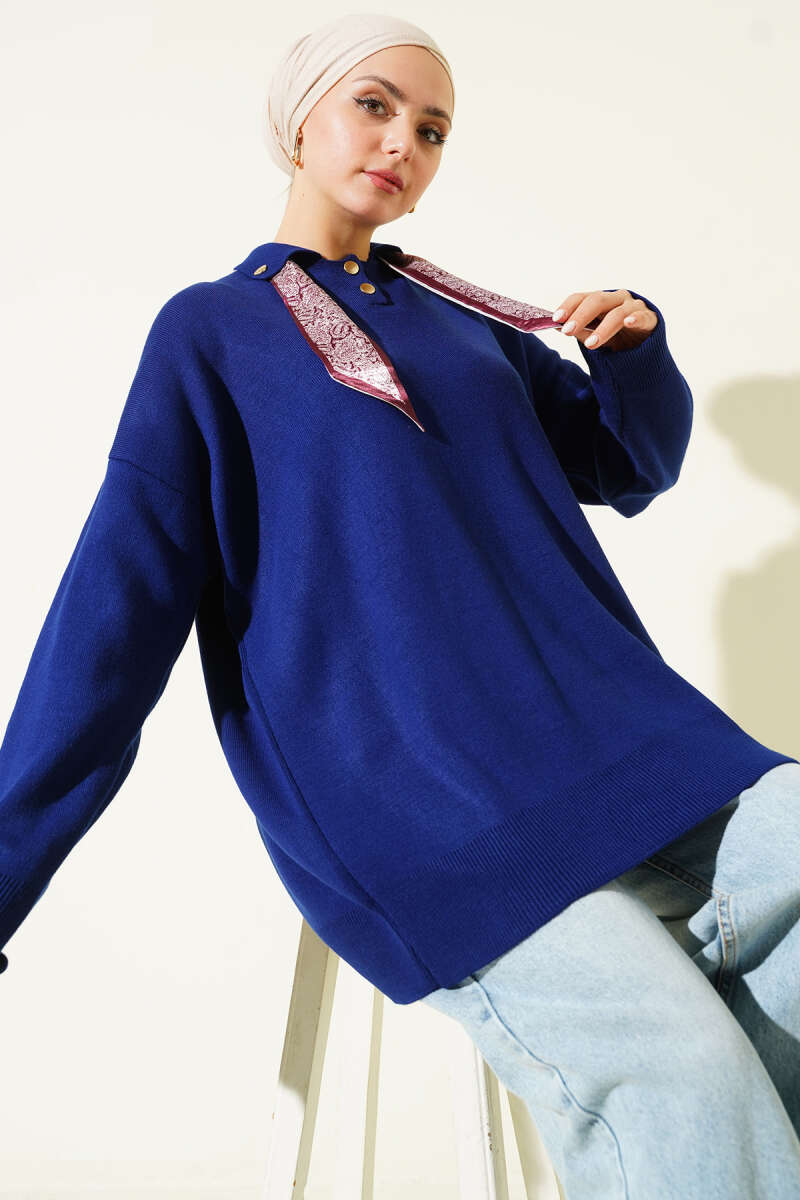 Gömlek Yaka Fularlı Triko Tunik Lacivert