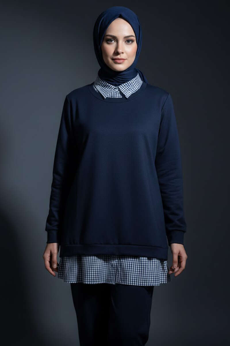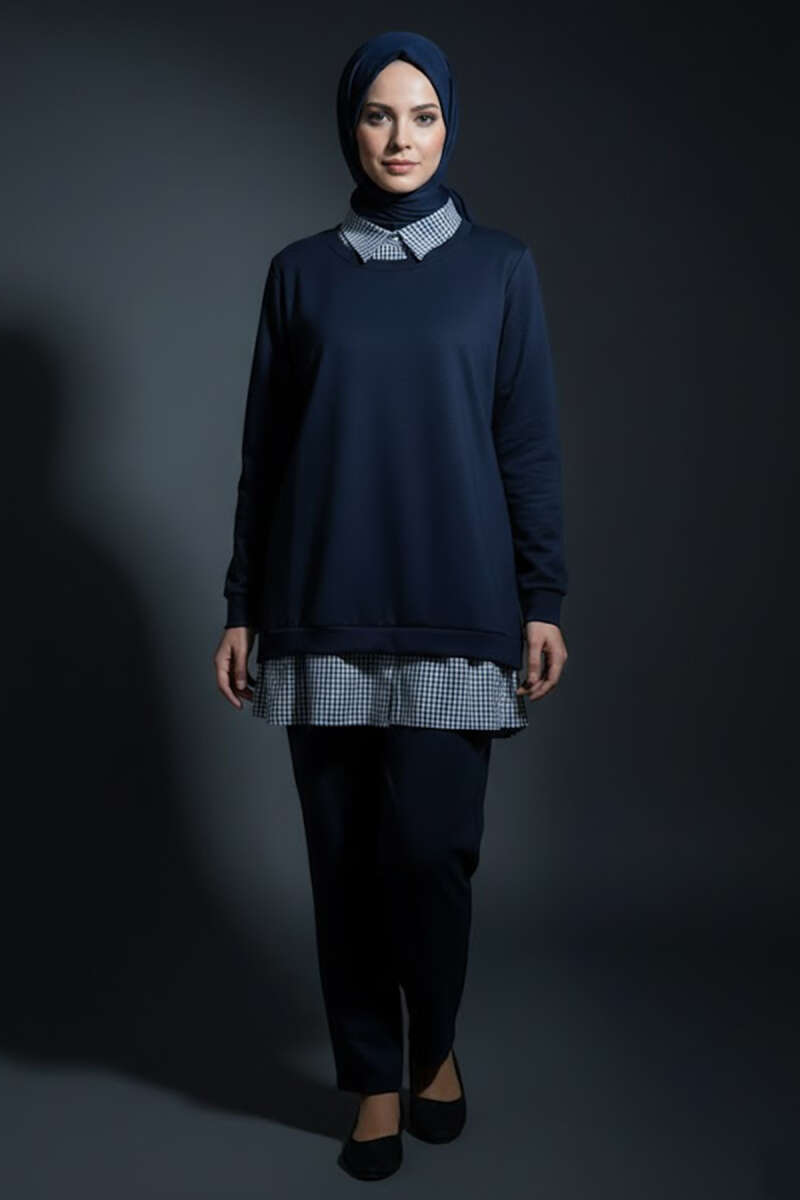 Gömlek Yaka Garnili İkili Takım Lacivert