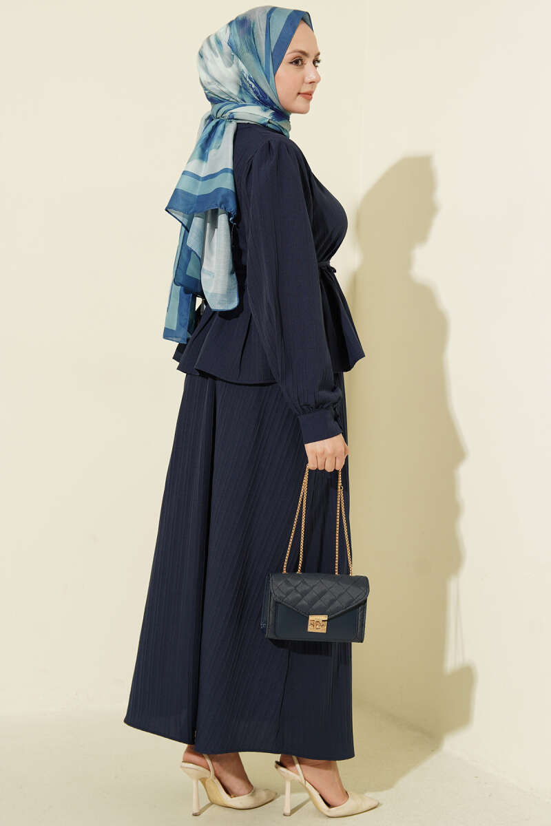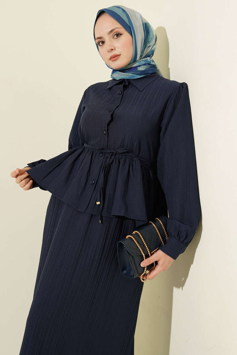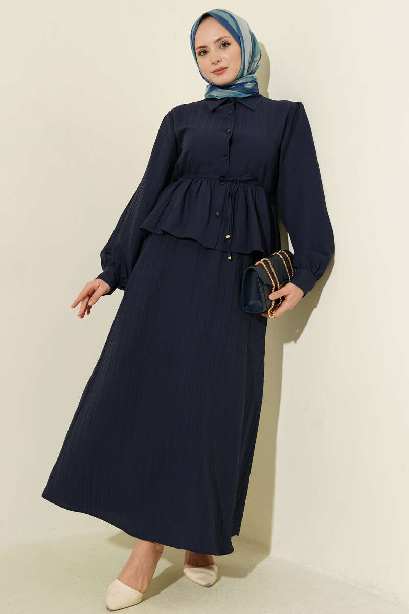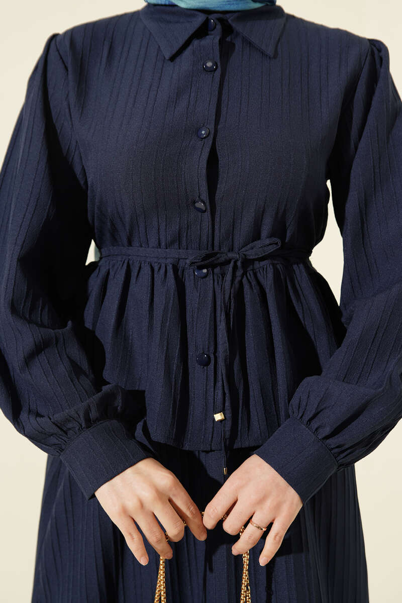 Gömlek Yaka İp Bağcıklı Etekli İkili Takım Lacivert