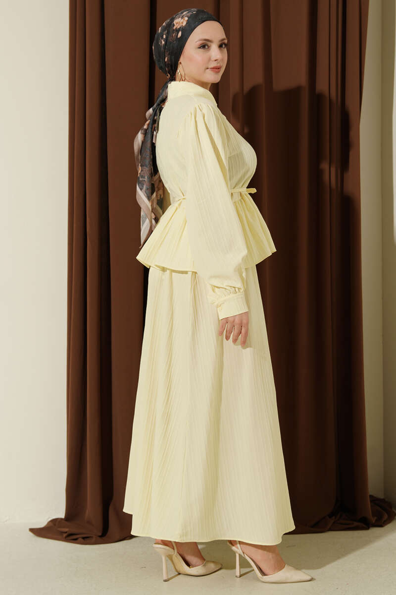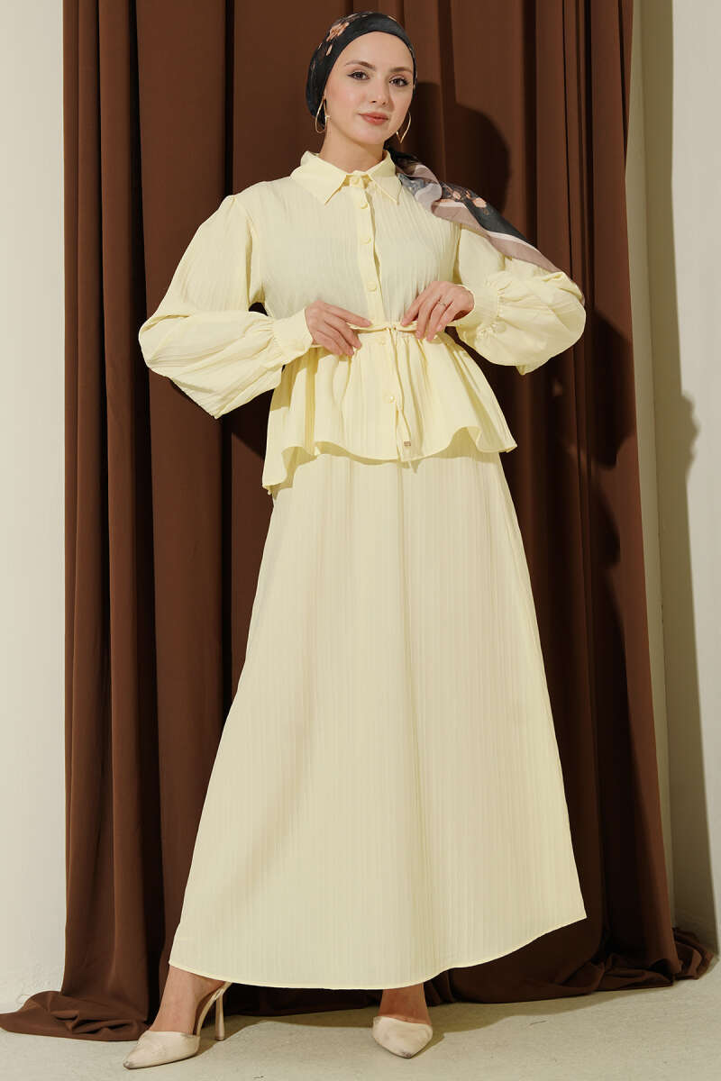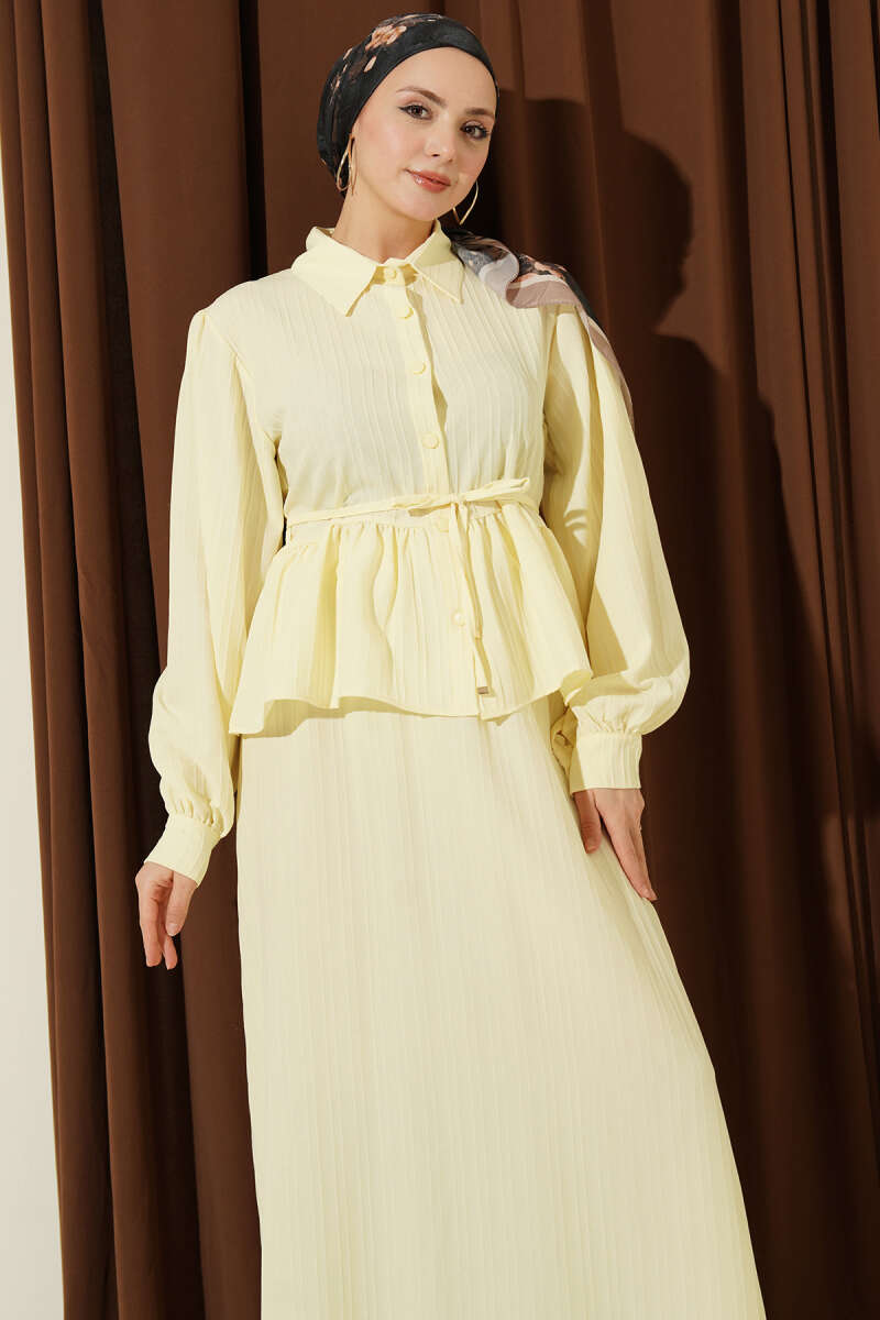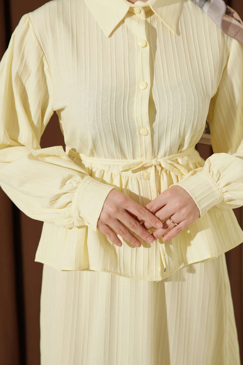 Gömlek Yaka İp Bağcıklı Etekli İkili Takım Sarı