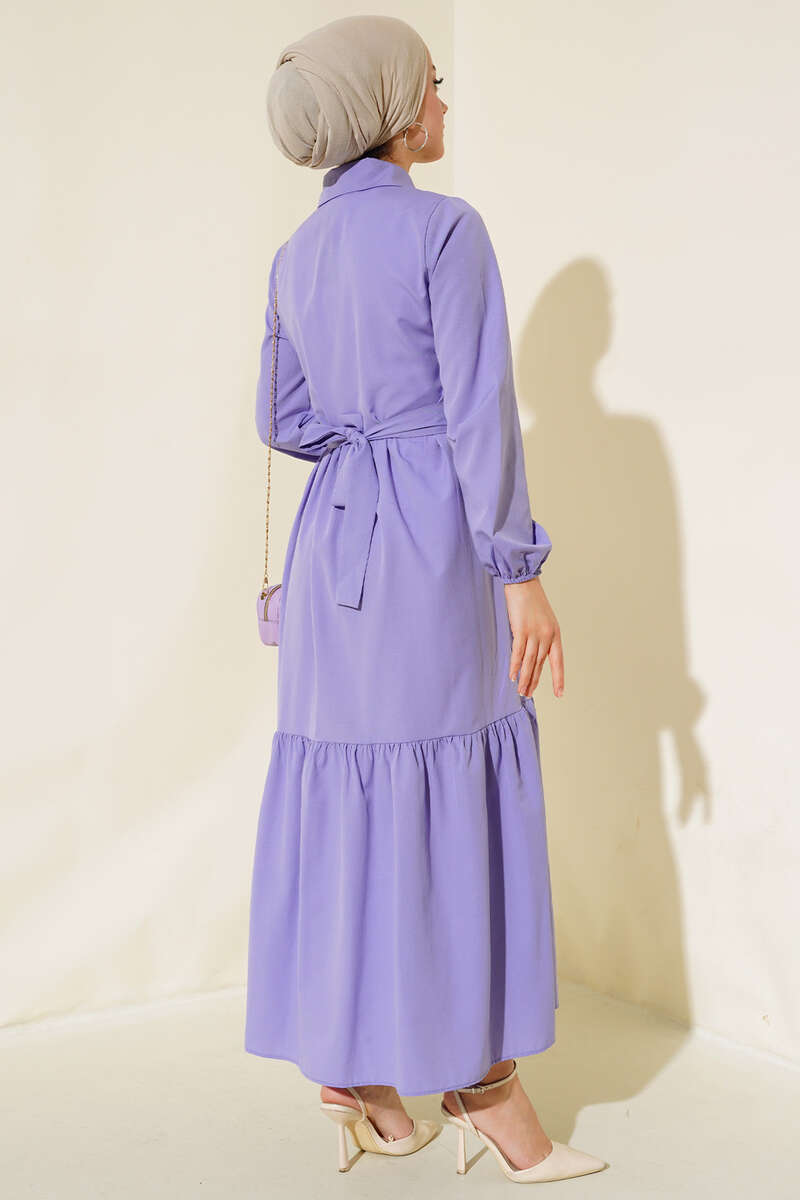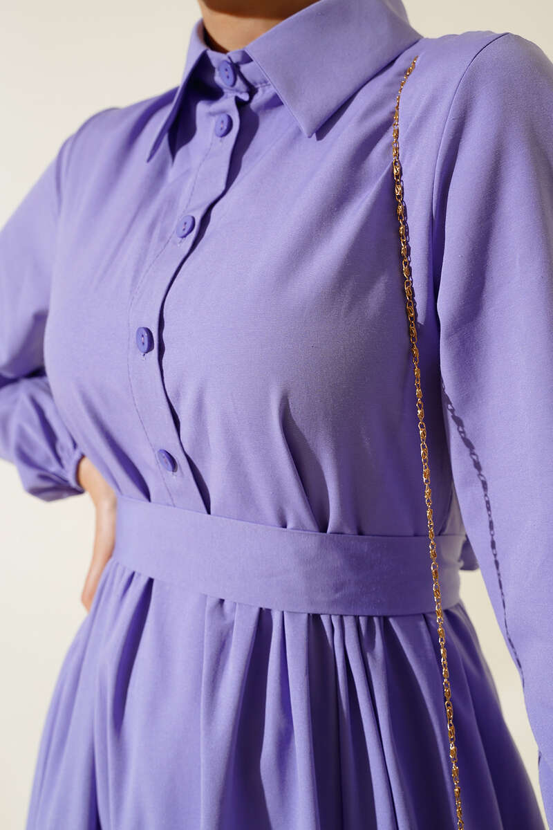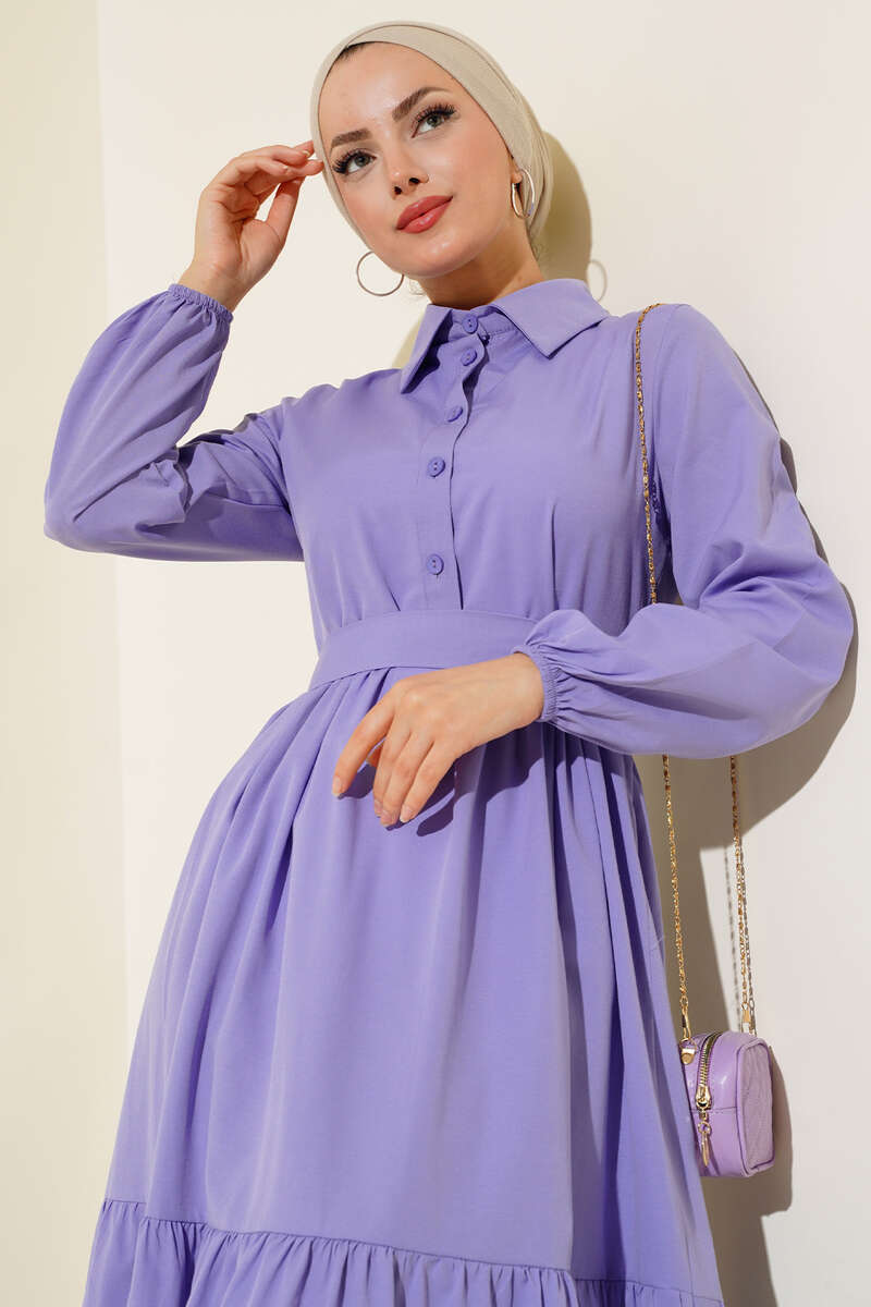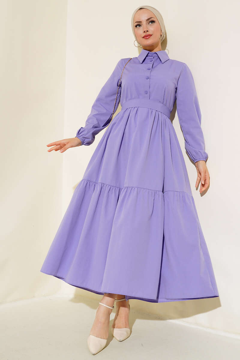Gömlek Yaka Kat Elbise Lila