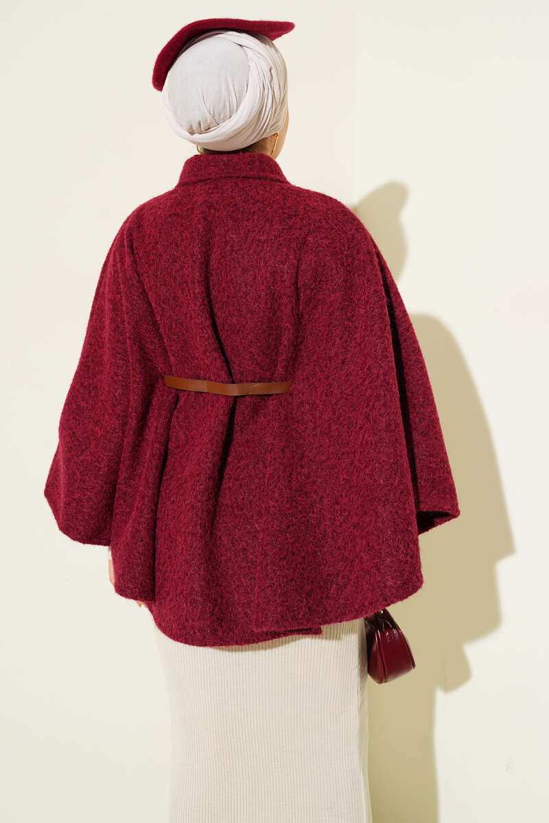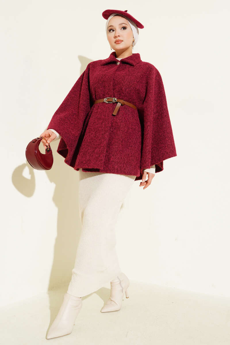 Gold Düğmeli Kaşe Panço Melanj Gri