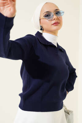 Bisiklet Yaka Sakal Detaylı Kazak Lacivert