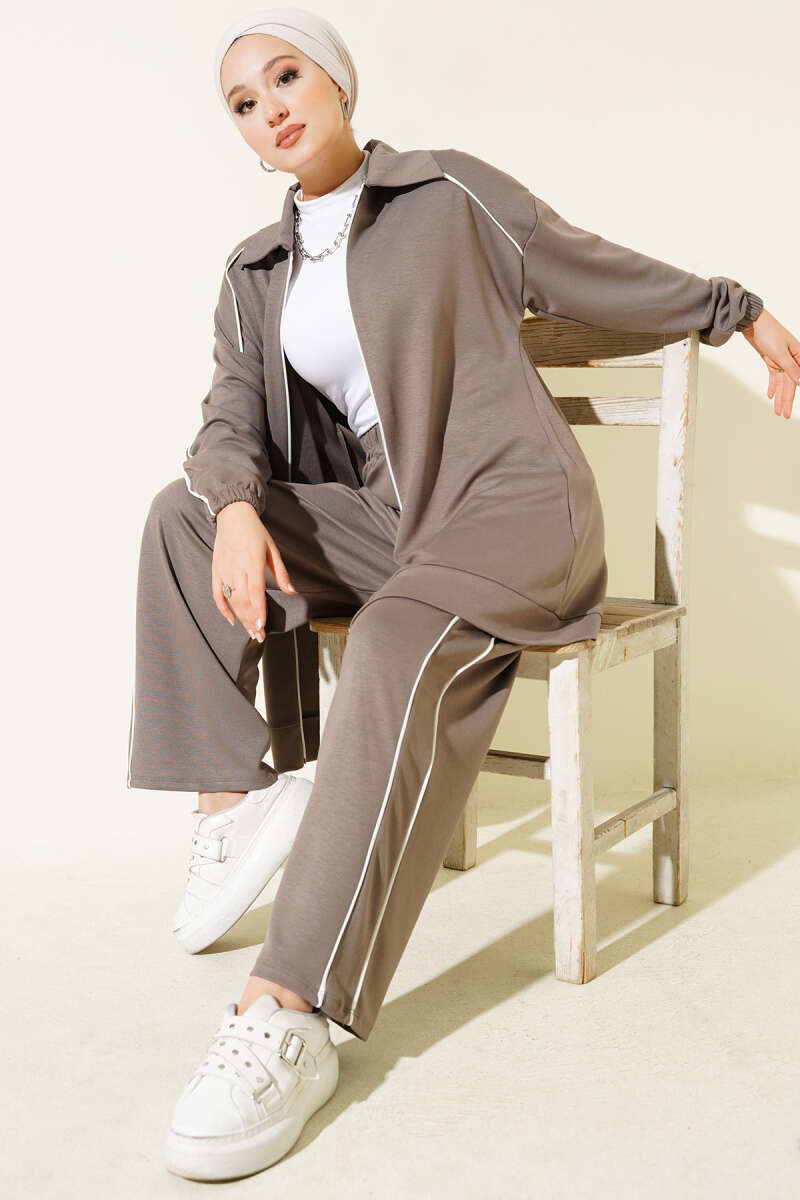 Gömlek Yaka Loyşa İkili Takım Vizon