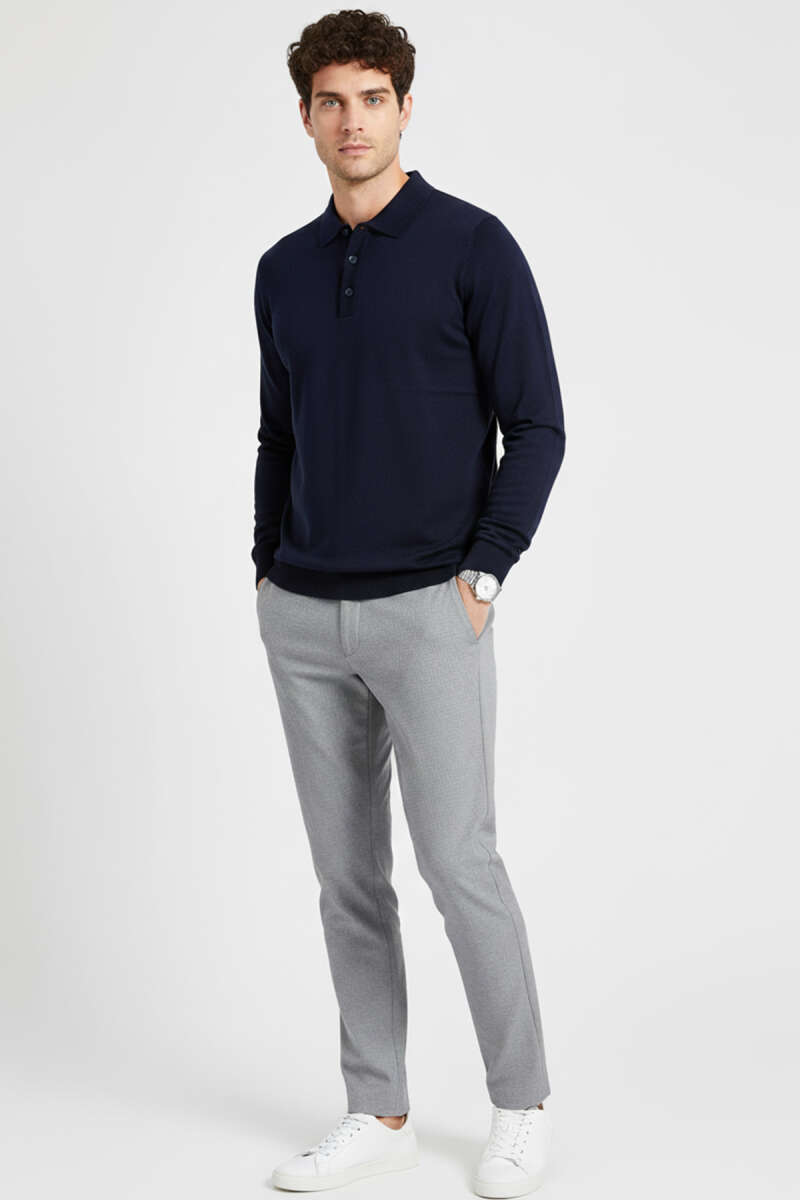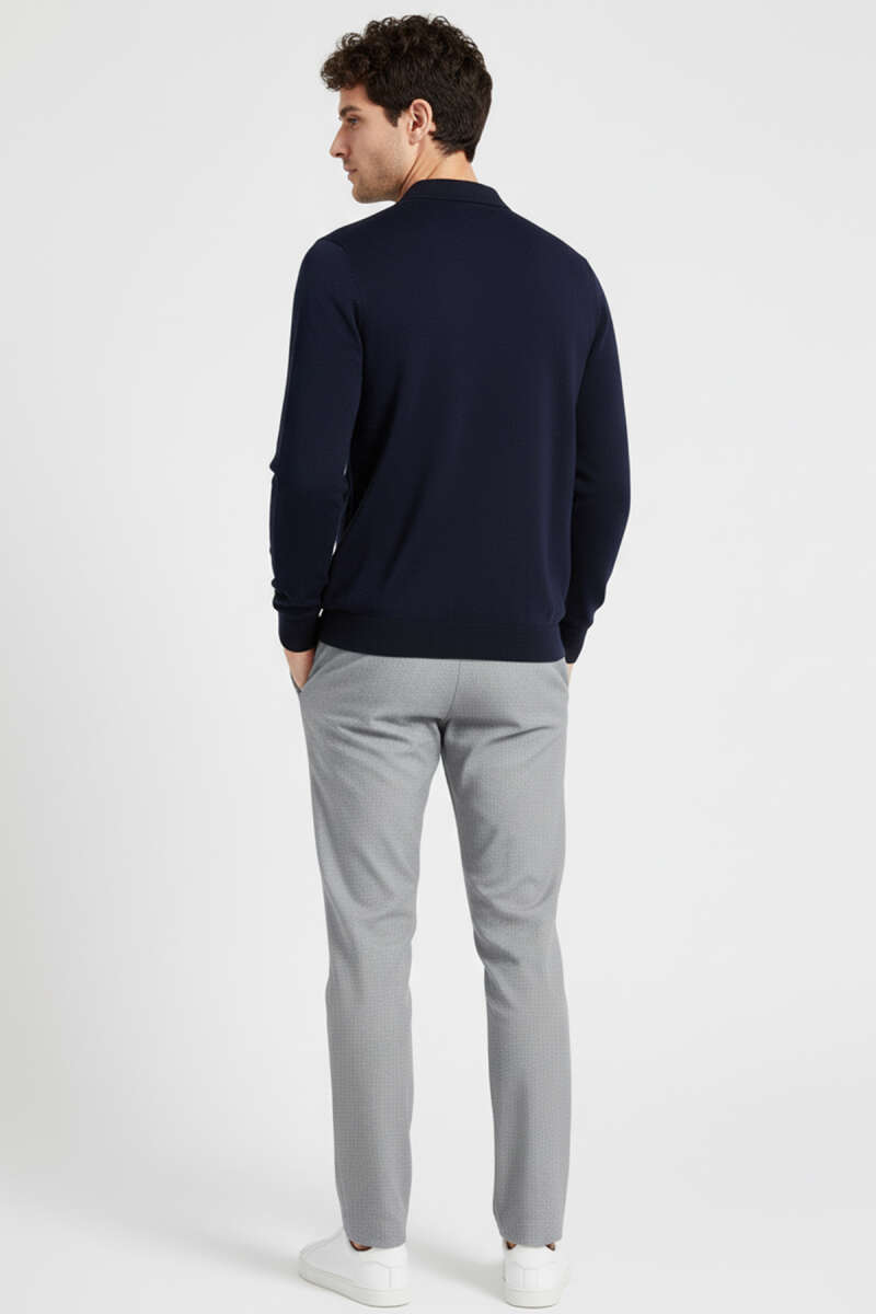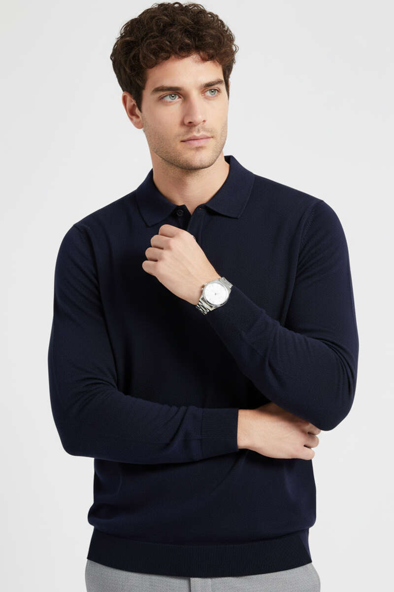 Polo Yaka Çizgi Detaylı Erkek Kazak Lacivert