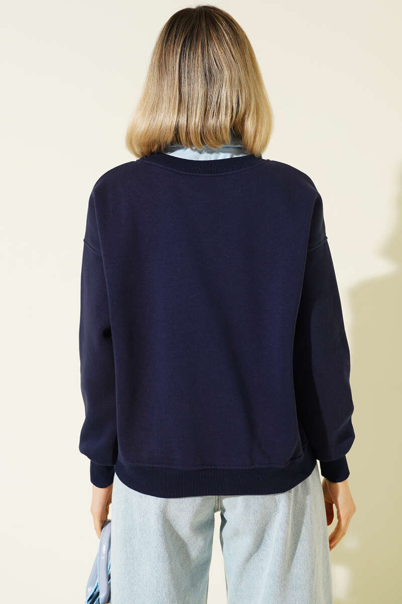 Ayıcıklı Üç İplik Gömlek Yaka Sweatshirt Ekru