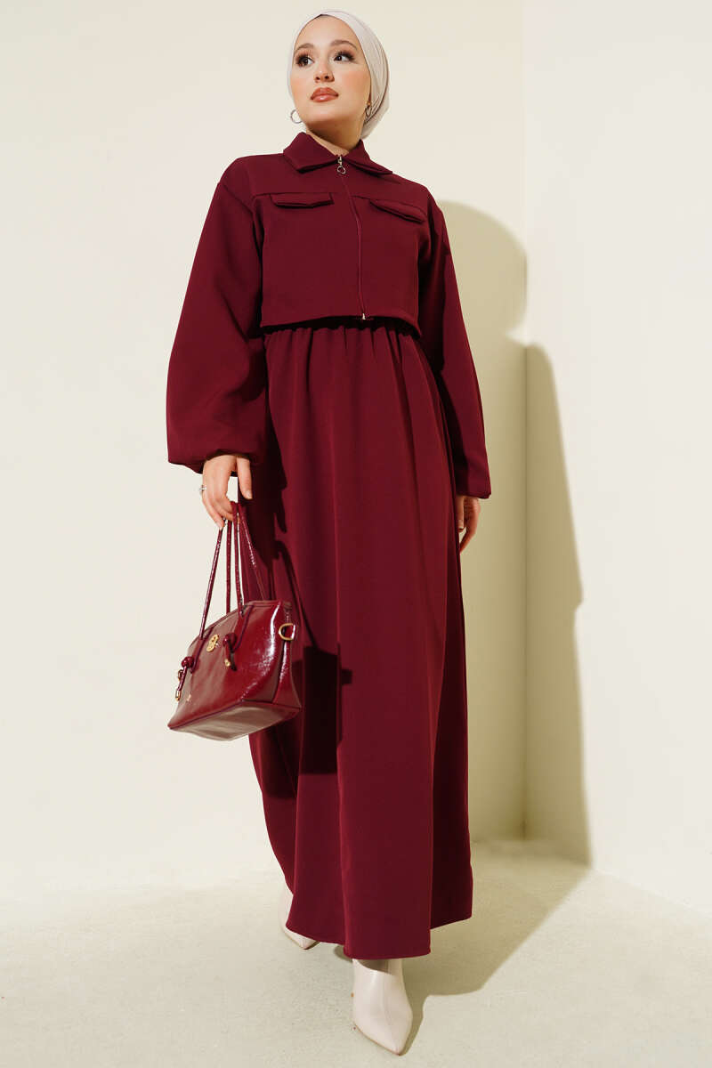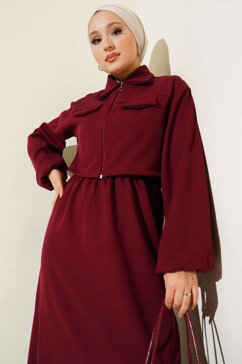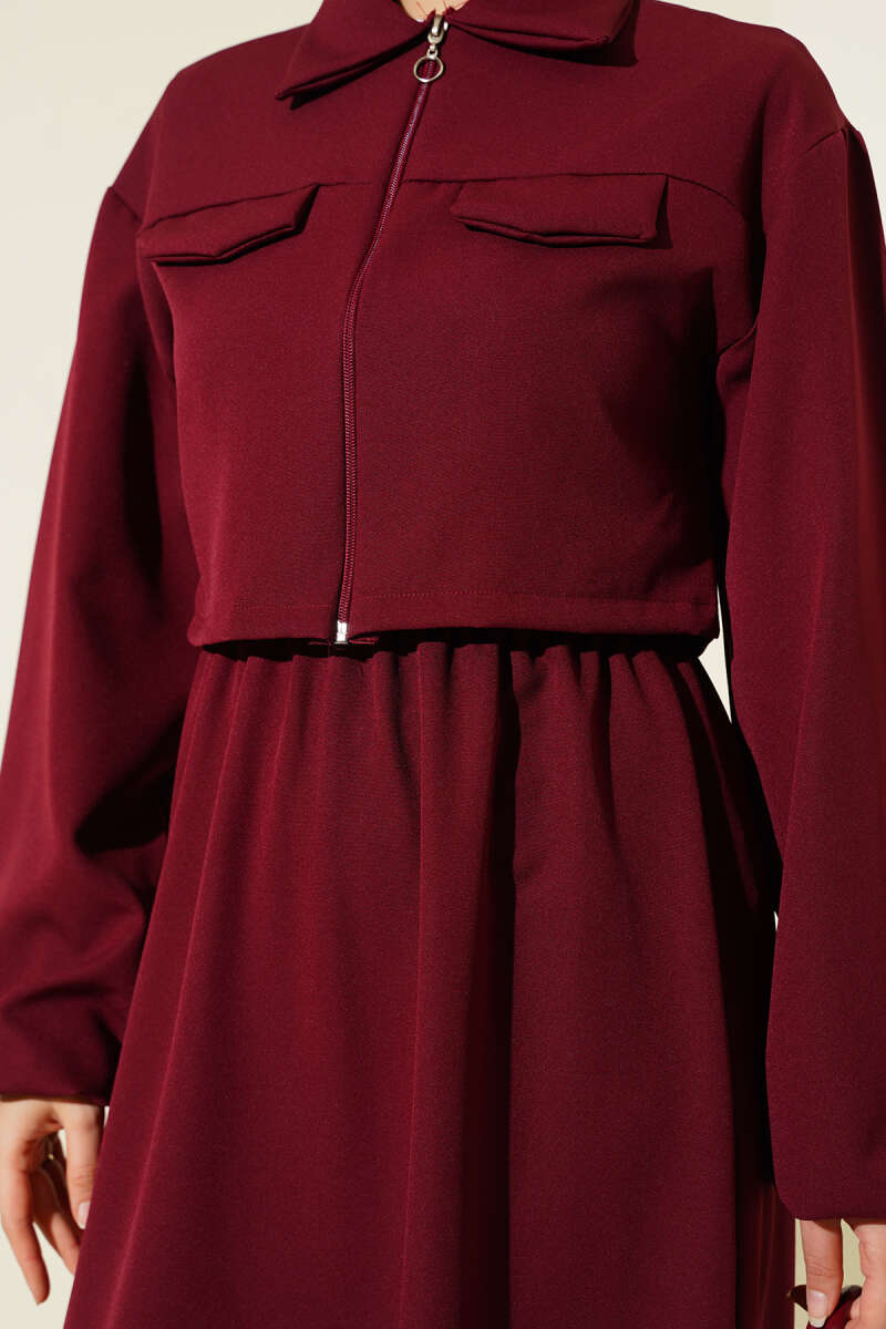 Gömlek Yaka Önü Fermuarlı Jile Takım Bordo