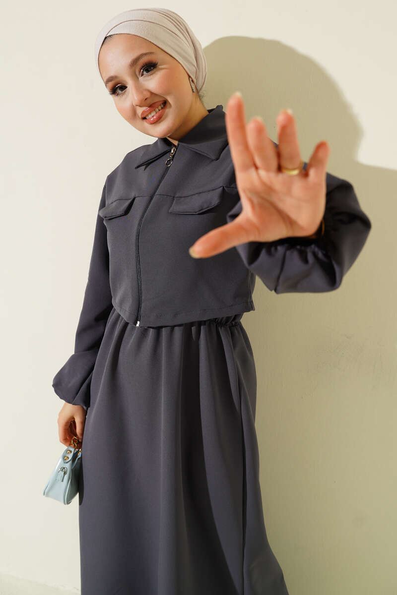 Gömlek Yaka Önü Fermuarlı Jile Takım Füme