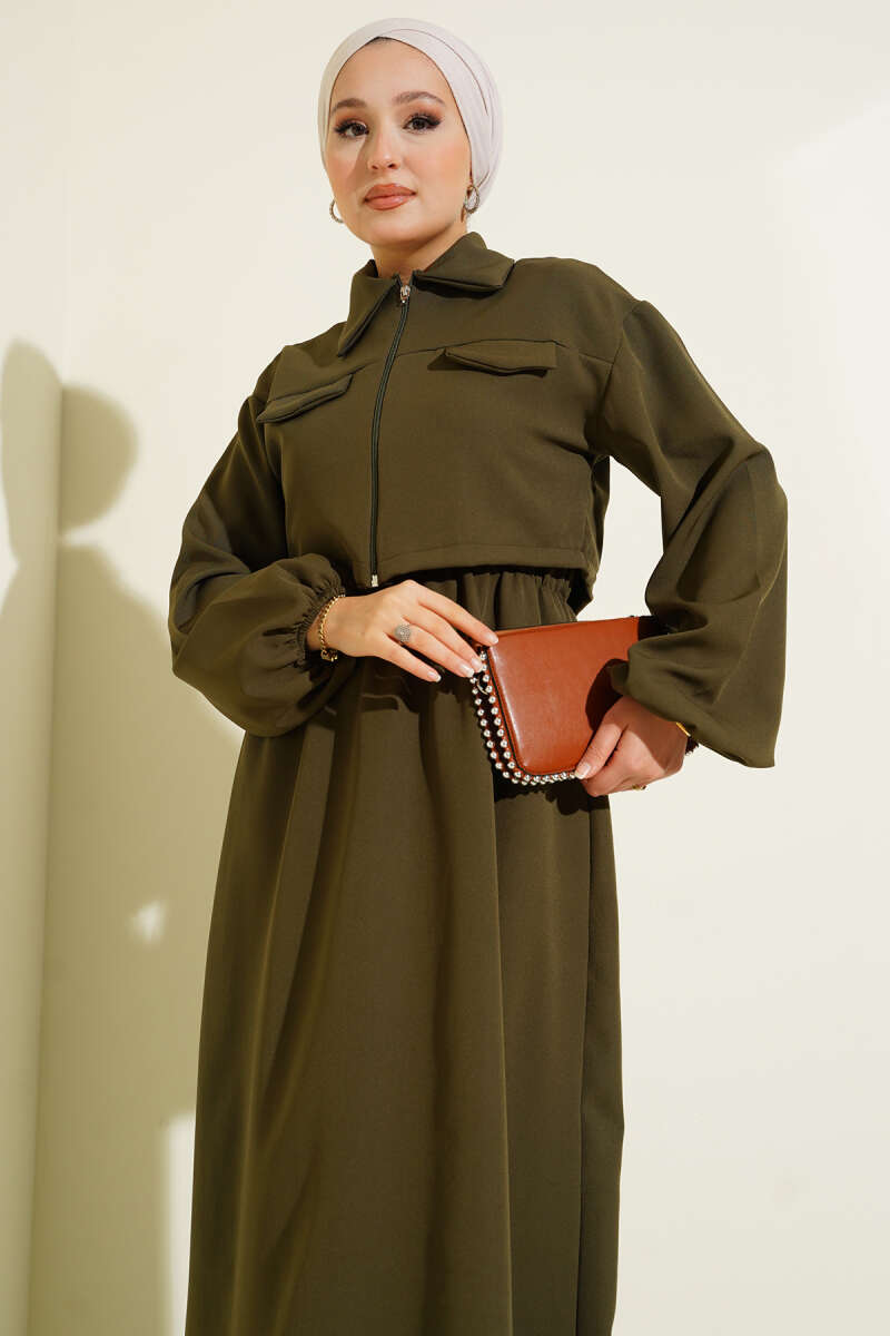 Gömlek Yaka Önü Fermuarlı Jile Takım Haki