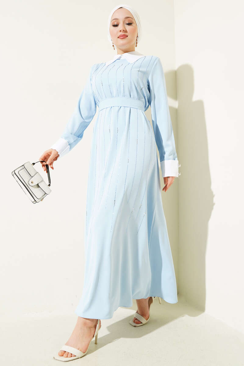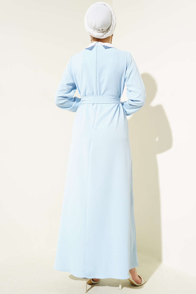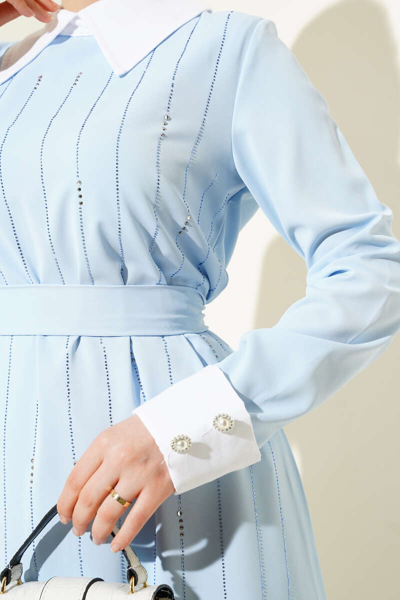 Metal Düğme Süslemeli Bağcıklı Elbise Vizon